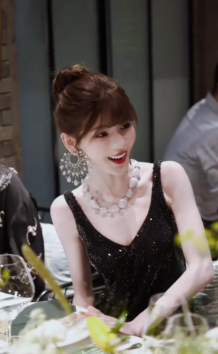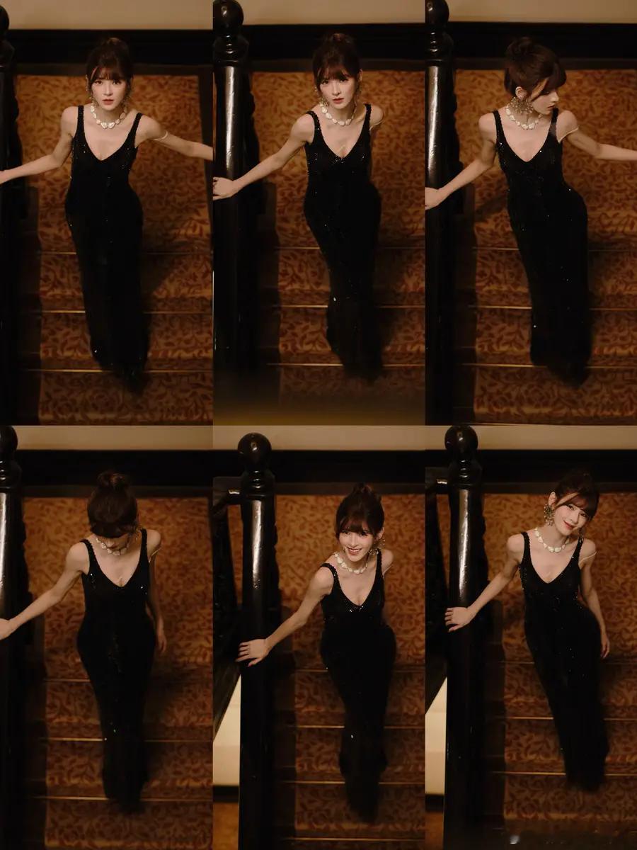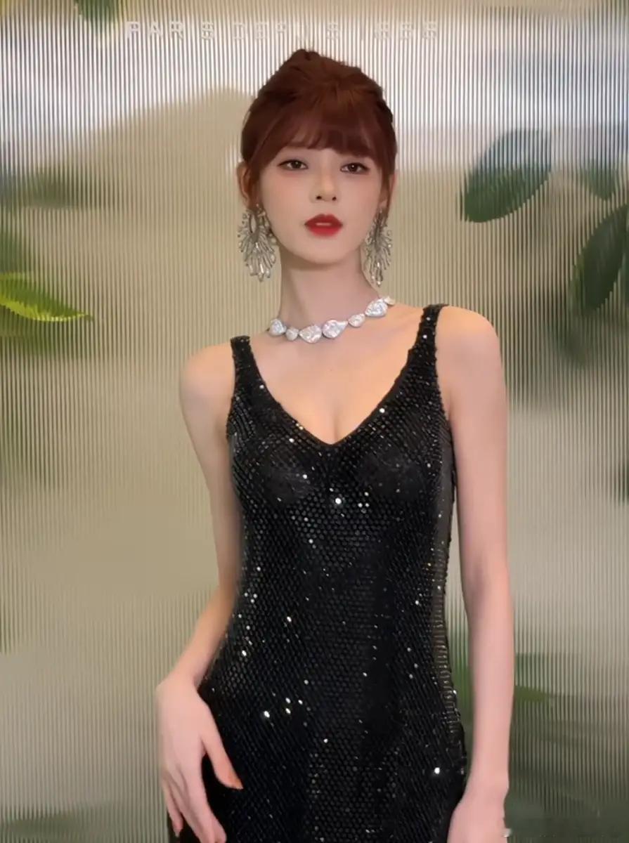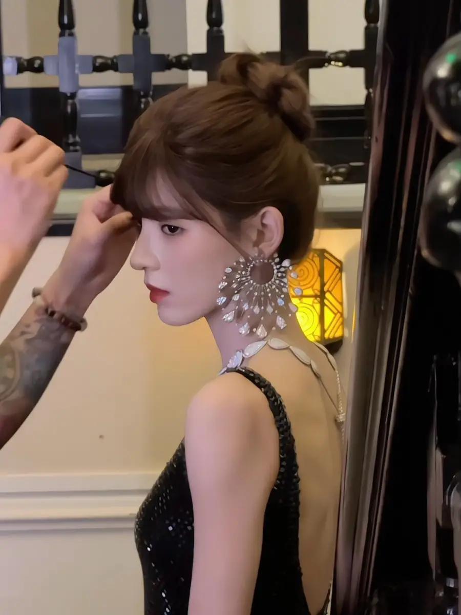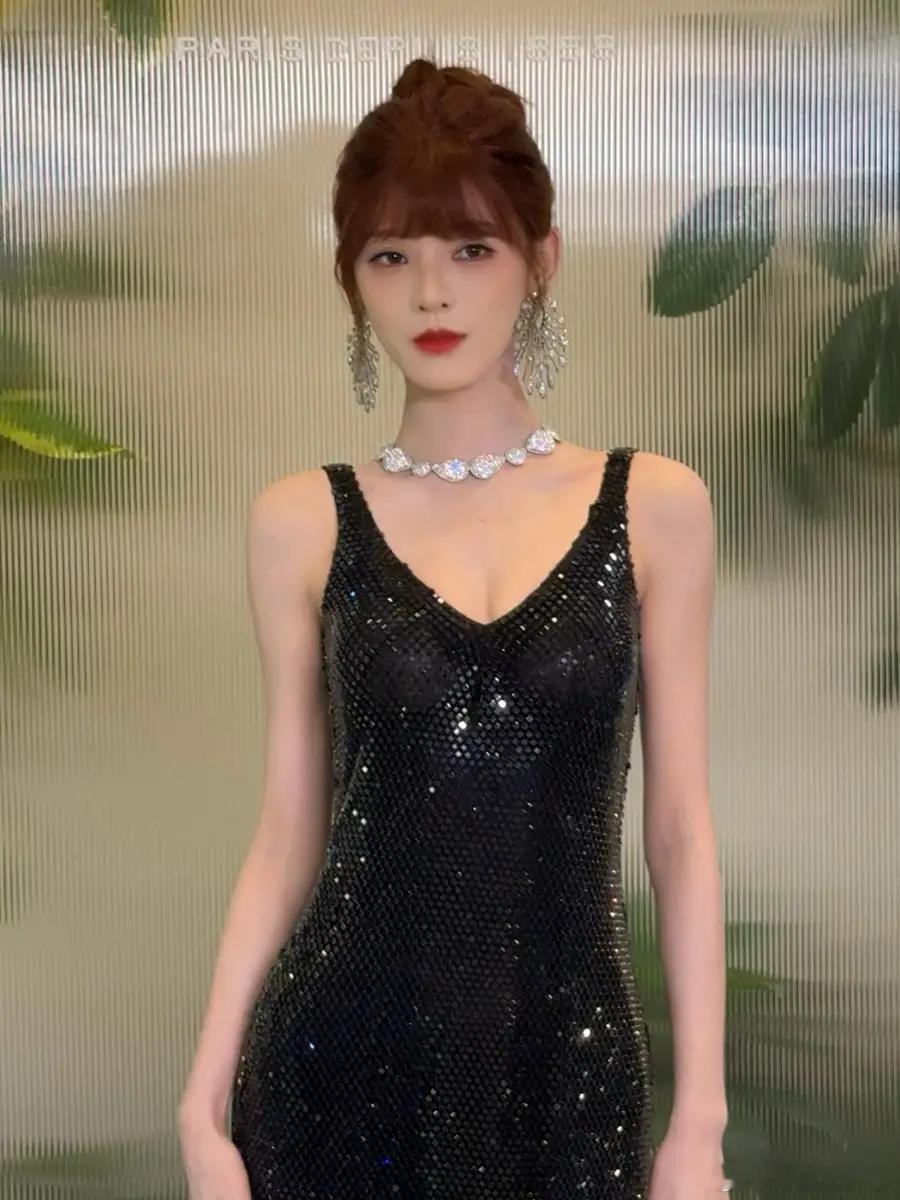 张予曦穿黑色亮片裙秀光滑美背!戴超大耳饰气质佳