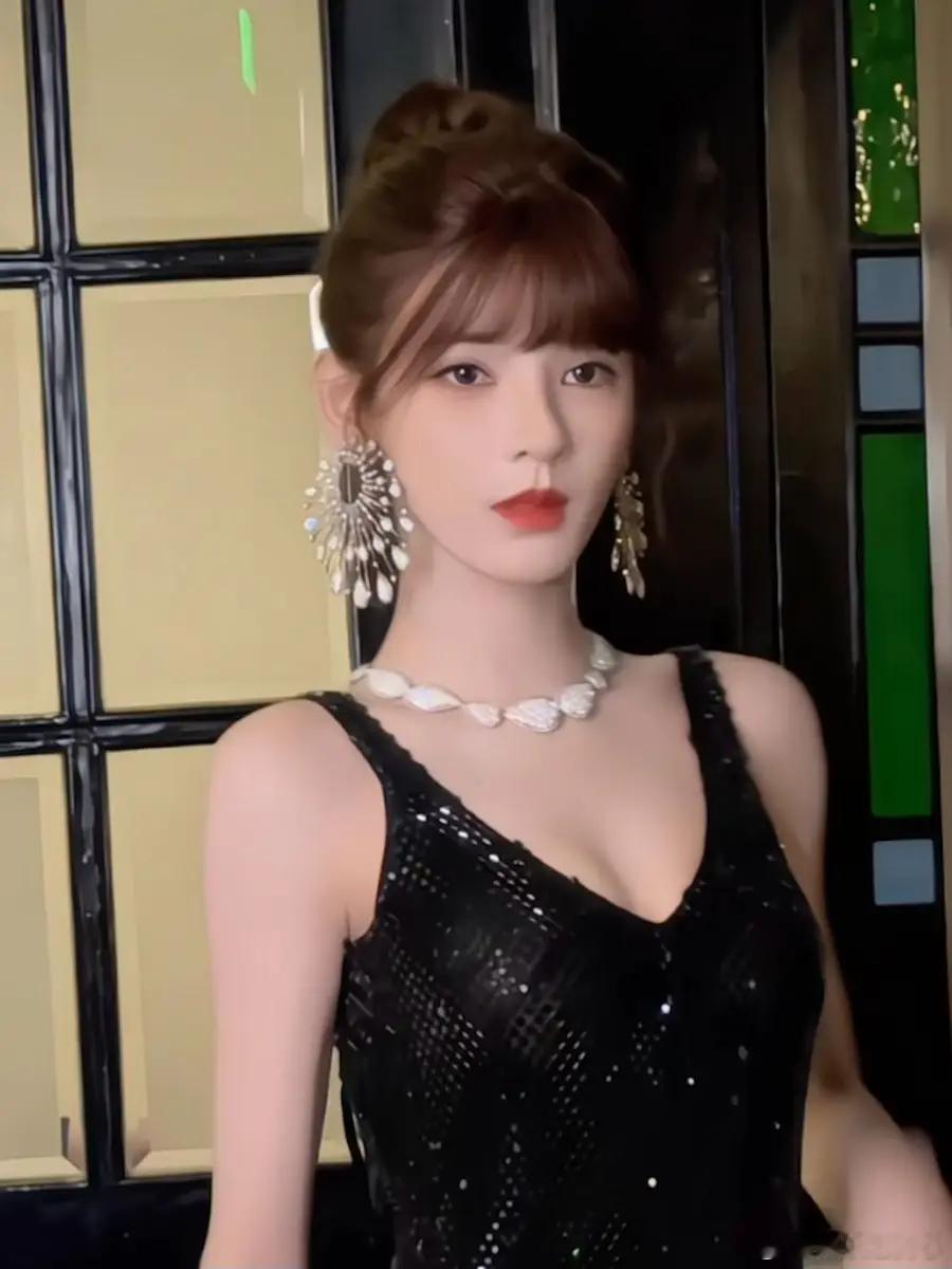 18日,张予曦参加活动的造型美照释出,她身着黑色亮片裙大方秀光滑美背,戴着超大耳饰,气质佳!