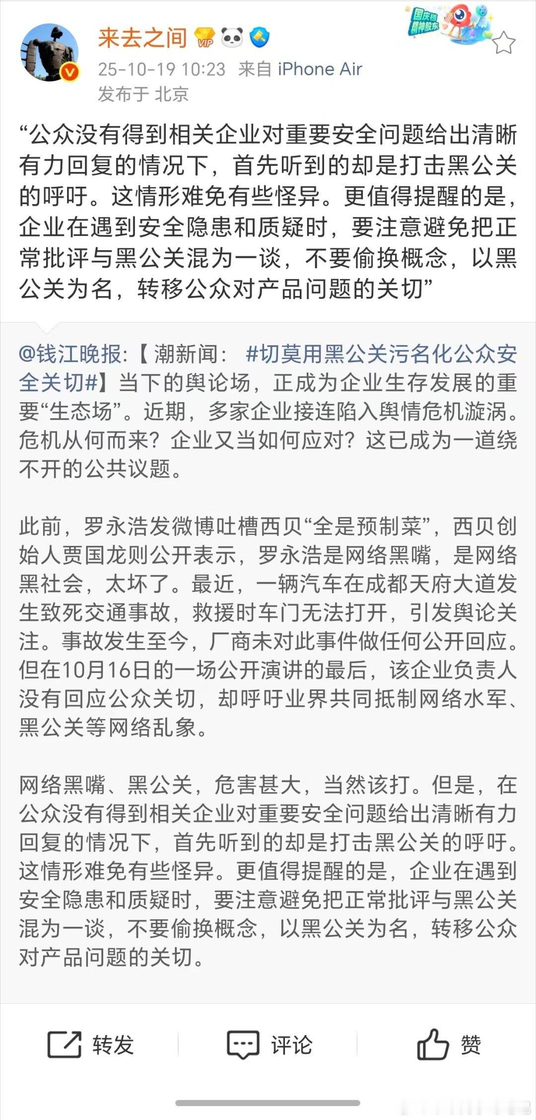 有些东西摆在明面上,谁都看得懂,只是说与不说的问题。现在,应该是到了可以说的时候了[并不简单]切莫用黑公关污名化公众安全关切