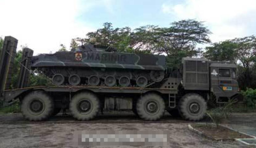 印尼海军陆战队装备的中国万山WS2400运输车,仿制的苏联的MAZ-543卡车,