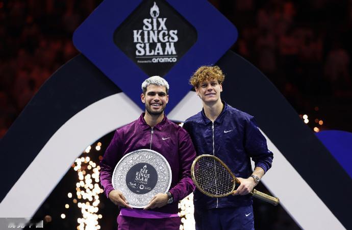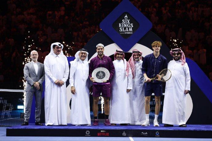 网球:辛纳六王赛卫冕豪取600万美元巨奖! 北京时间10月18日六王大满贯决赛,辛纳直落两盘6-2、6-4再度战胜阿尔卡拉斯,连续两年问鼎沙特!带走600万美金奖金和一把纯金球拍。