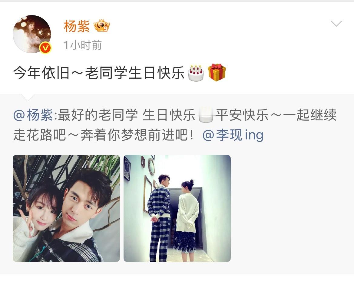 杨紫连续七年发博为李现庆生紫妹连续七年给老同学李现庆生 ~暖心的紫紫 ​​​