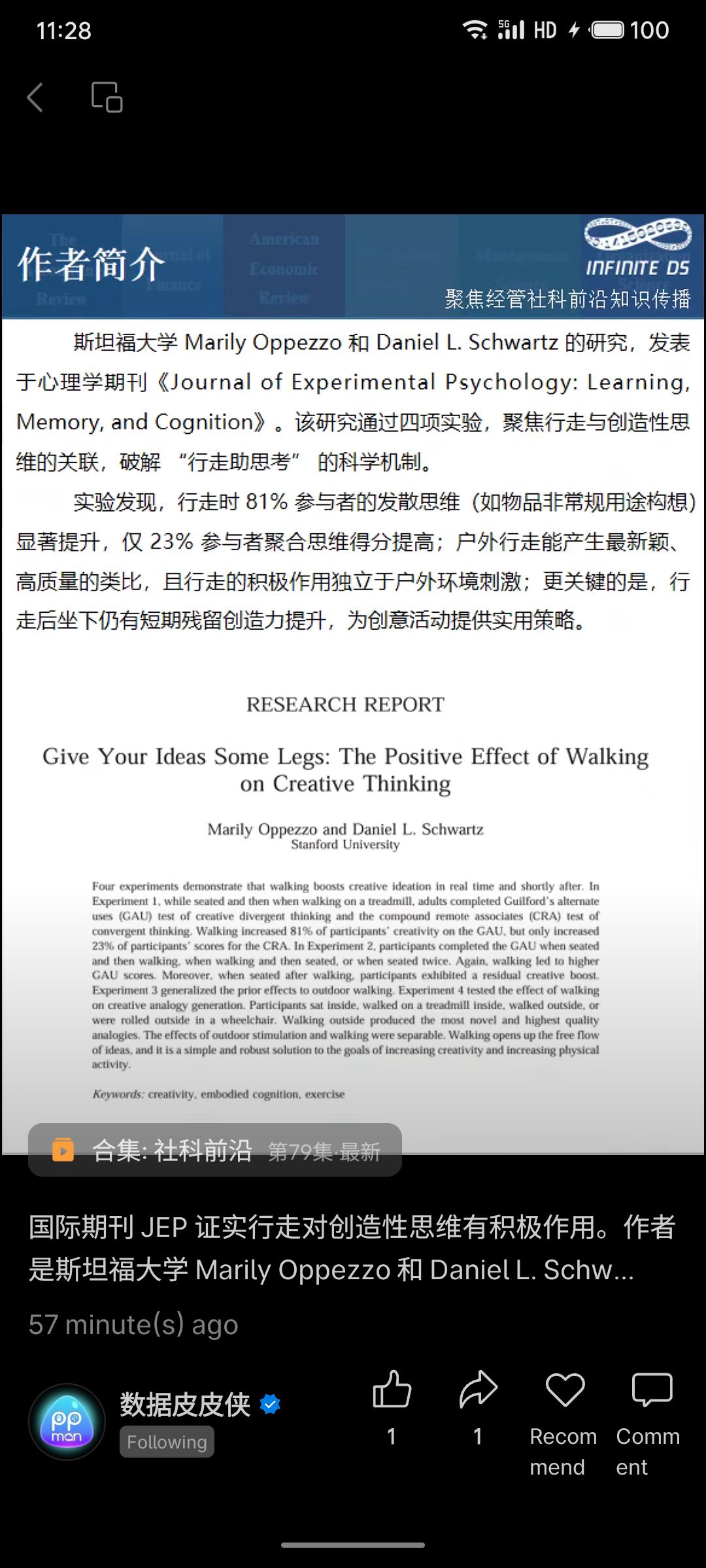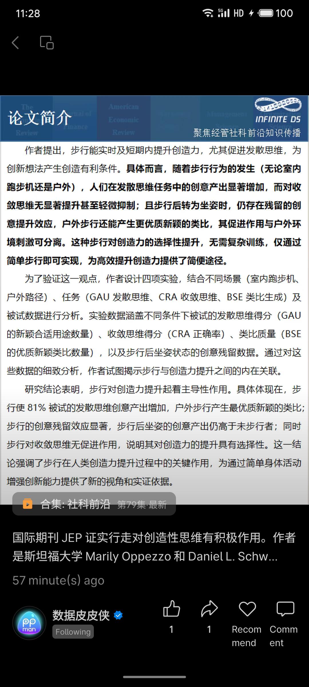 斯坦福大学研究证实,步行能显著提升创造性思维,尤其对发散思维(如想出物品新用途)促进明显,81%的参与者在此方面表现更佳。这种积极效果在户外行走时最为理想,且独立于环境刺激,甚至在步行后坐下时仍会短暂延续。该研究为通过简单身体活动激发创意提供了科学依据。