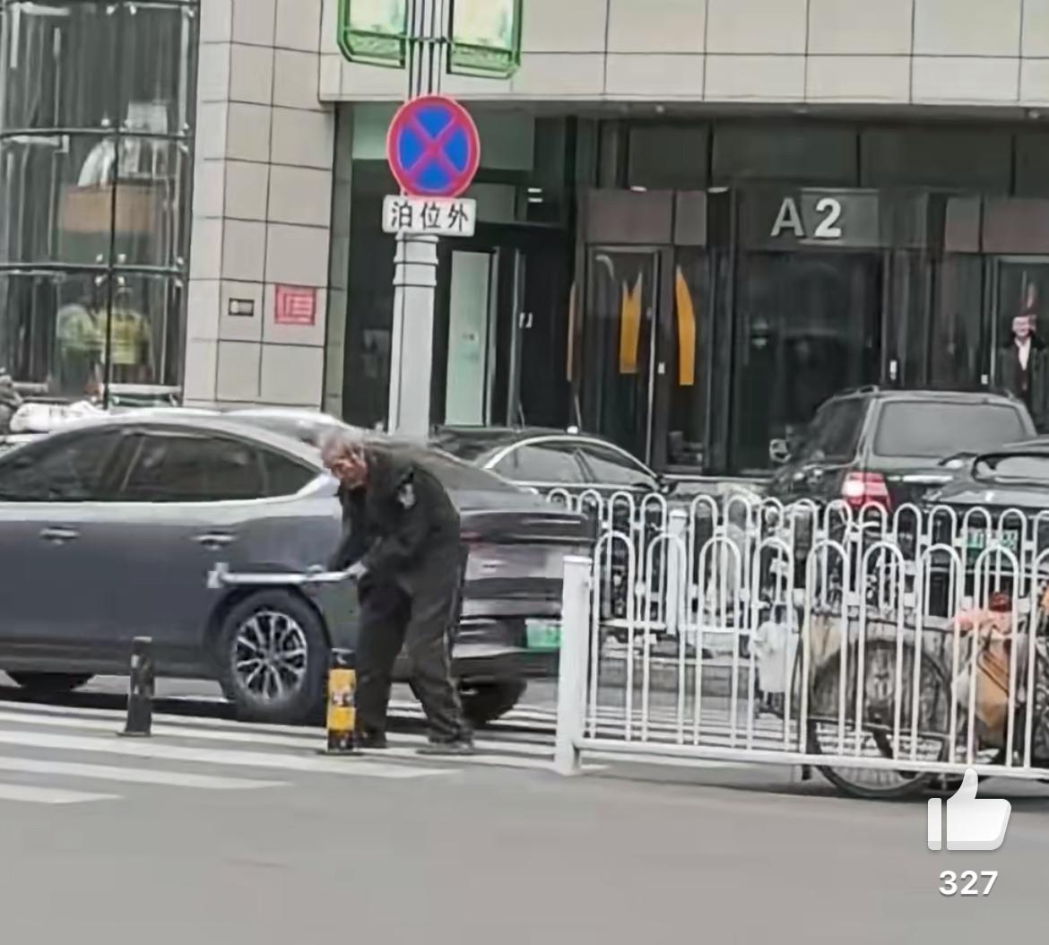 等红绿灯看到的,大爷一锤子把斑马线上的交通桩给砸了,当废铁捡走。大爷就是这么生猛,随车带着大铁锤,路见这个斑马线上的交通桩,阻止车辆通过的,大爷如获至宝,心想捡回去能卖钱。这种人很无知,也很会耍无赖,拿他没办法的。