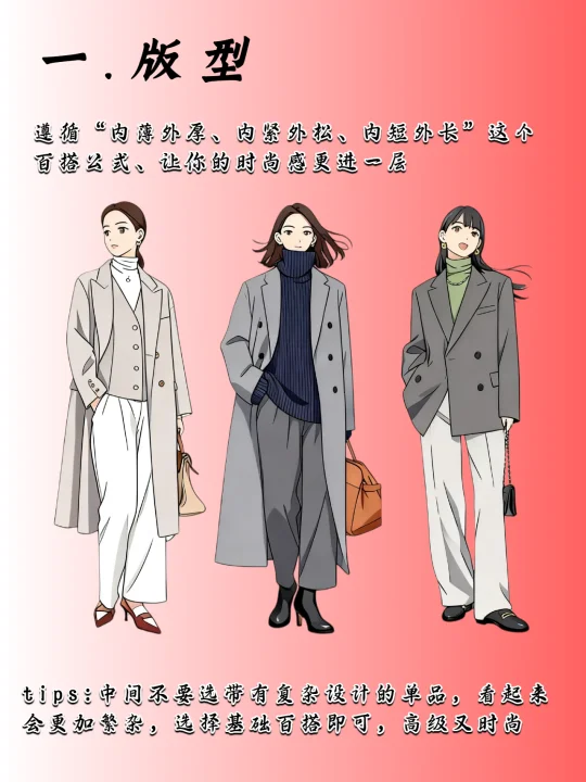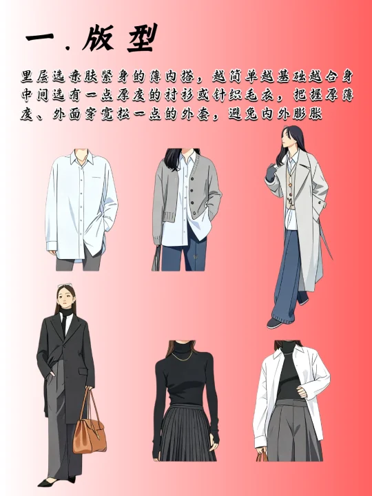 叠穿要遵循**“内薄外厚、内紧外松、内短外长”**的万能公式: