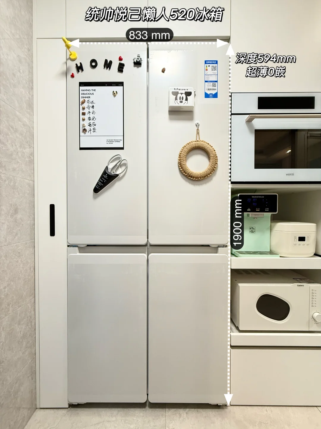 谁懂啊!5㎡小户型厨房连转身都费劲,改造时死磕“榨干”厨房每一寸空间,现在被我改造成了梦中情“厨”!用起来真的太香了!尤其是那些能“隐身”的设计,既省地又好看! 墙面千万别空着,装了旋转挂钩挂锅铲、抽拉置物架放调料,台面瞬间清爽一半🍃 厨房通体白色系看着不仅干净还显大 打了一组高柜提前预留了冰箱的位置,小户型挑冰箱的第一原则就是要皮薄馅大。 我家是可以0嵌的统帅悦己懒人520冰箱,594mm的超薄机身,和2张A4纸差不多,各种橱柜甚至角角落落都能塞下!颜值也让我一眼心动,奶白色机身和我家浅系厨房装修超搭,关键还有490的超大容量轻松装下全家人一周的食材,小户型终于不用在“体积”和“容量”里做选择! 最爱的是它的纵向收纳逻辑!以前菜叶子、剩菜总堆在下层,翻找时还会碰掉东西,现在按“常用在上、囤货在下”伸手就能拿到当天要吃的菜,连我这种懒得整理的人,都能轻松保持冰箱整齐。 而且自带MIX减压食盒,自带的三种档位模式可以灵活调节冰鲜、母婴、果蔬,打开果蔬模式后,以前放个1-2天水果就“萎靡不振”,现在水果放一星期还水灵灵的,保鲜效果绝了;冷藏区的黑金净化功能超实用,再也没有剩菜和水果串味的尴尬,哪怕和酱料或者榴莲混放,都不用担心味道大,打开冰箱只有清清爽爽的味道~而且抗菌率高达99.99%,现在我家是不仅吃的新鲜还放心! 冷冻区容量也很能打!加宽加大设计,平时囤的速冻饺子、牛排、冻水果,分层摆好完全不挤,再也不用翻半天找食材;连接海尔智家app,手机就能调温、看库存,躺沙发上就能预约解冻,懒癌星人狂喜!关键统帅它是海尔旗下的,品质和售后都有保障,冰箱核心部件有十年保修!咱就是不愧是老牌子给我带来的安全感。 现在朋友来我家,都问这5㎡厨房怎么这么能装,小户型厨房想省空间的,直接抄我的,绝对不踩雷!