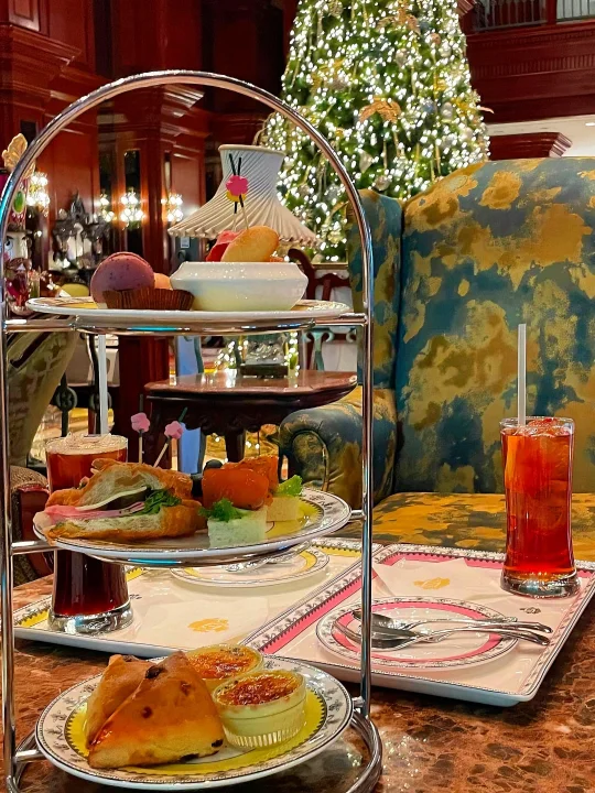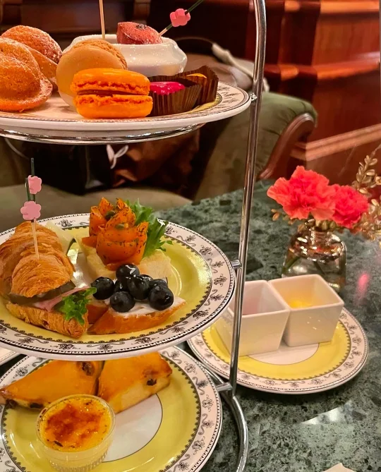 🔹下午茶套餐大约在59000韩币左右(今年不确定是否变化),是2人份的下午茶,有三层托盘,还有饮品,餐具都是粉色和淡黄色的,少女心十足