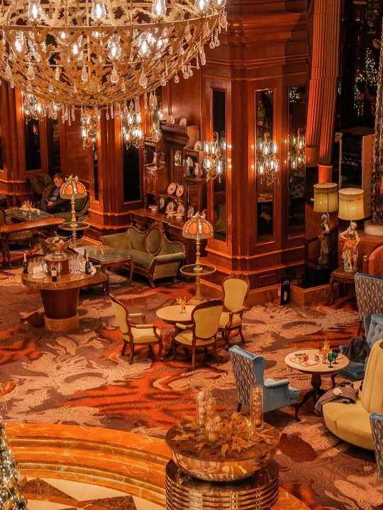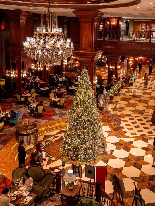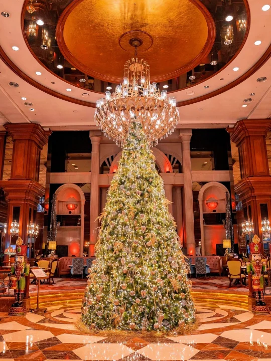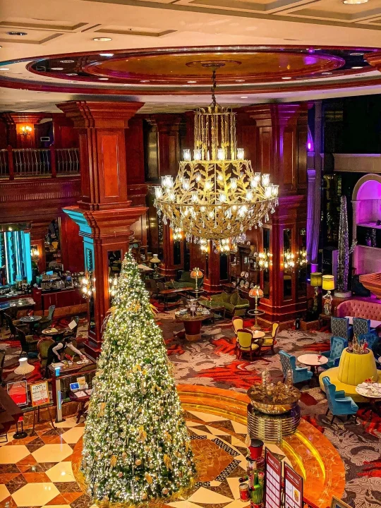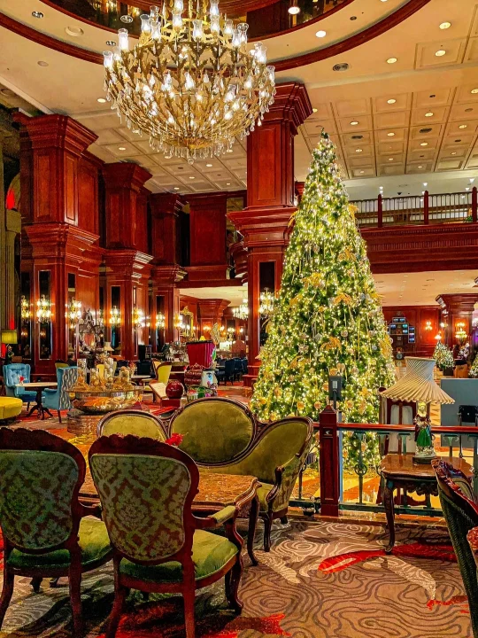 🔹圣诞季的时候,在大厅中央会有一颗很大的圣诞树,树上装饰着金色的装饰品和灯光,bling bling的闪闪发光,从二楼可以俯瞰圣诞树,这里也是一个很不错的拍照机位