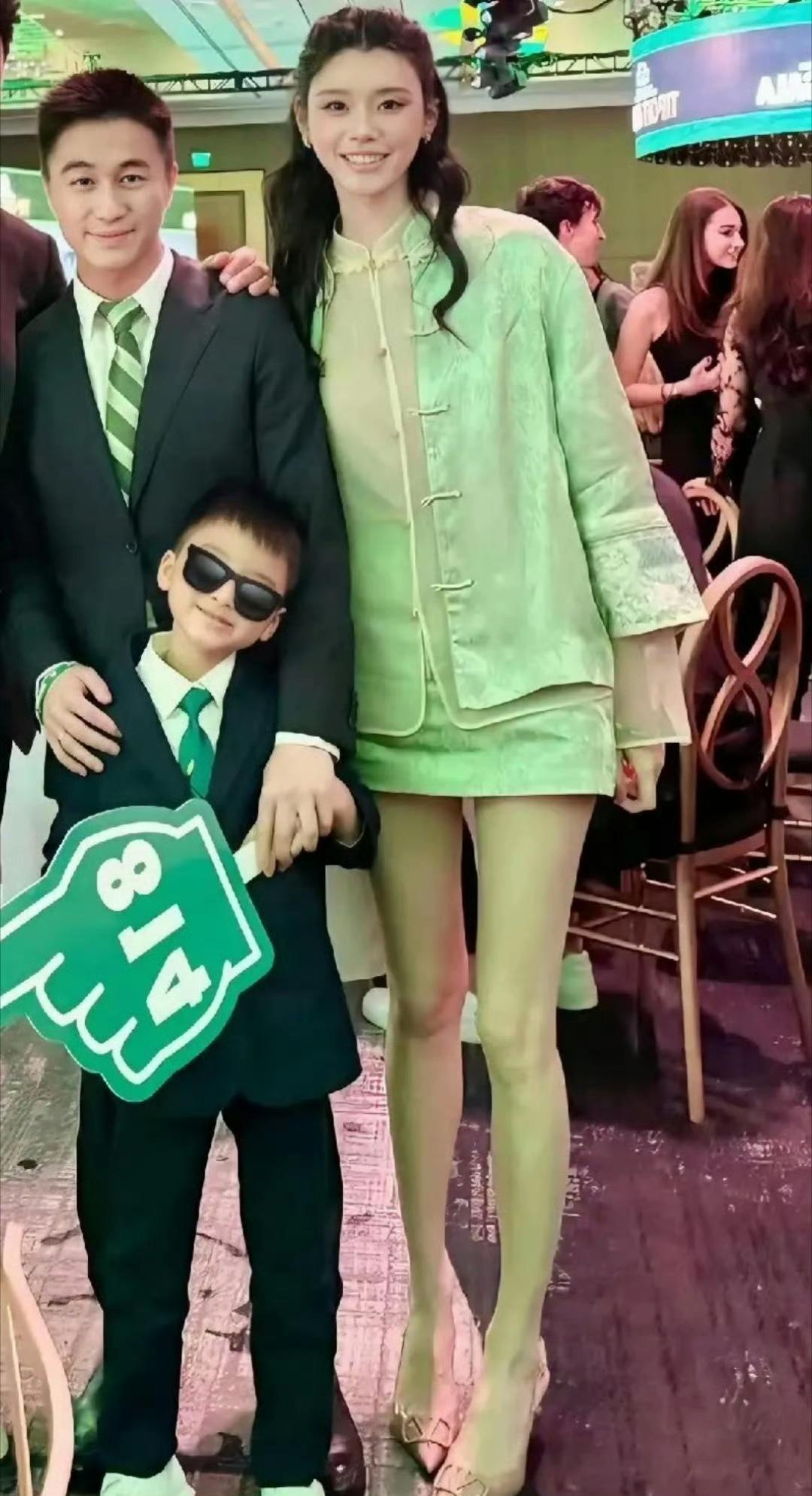 何猷君和老婆奚梦瑶带着儿子去参加基金会活动咯。奚梦瑶当天打扮得超亮眼,穿的是绿色新中式,露出修长的大腿,整个人既优雅又时尚。不得不说,何猷君真的挺有福气的,能拥有这么漂亮又有气质的老婆,一家三口同框的画面太温馨啦。