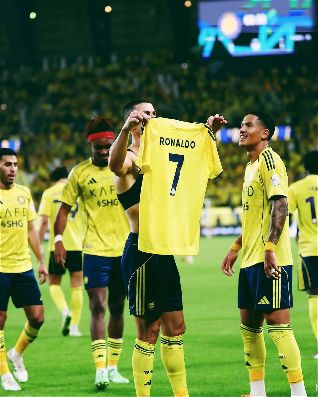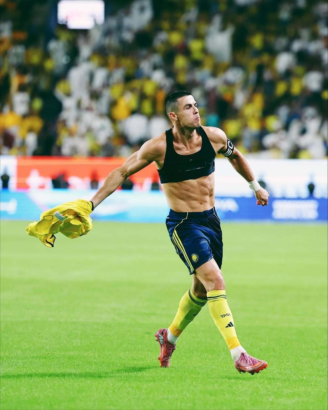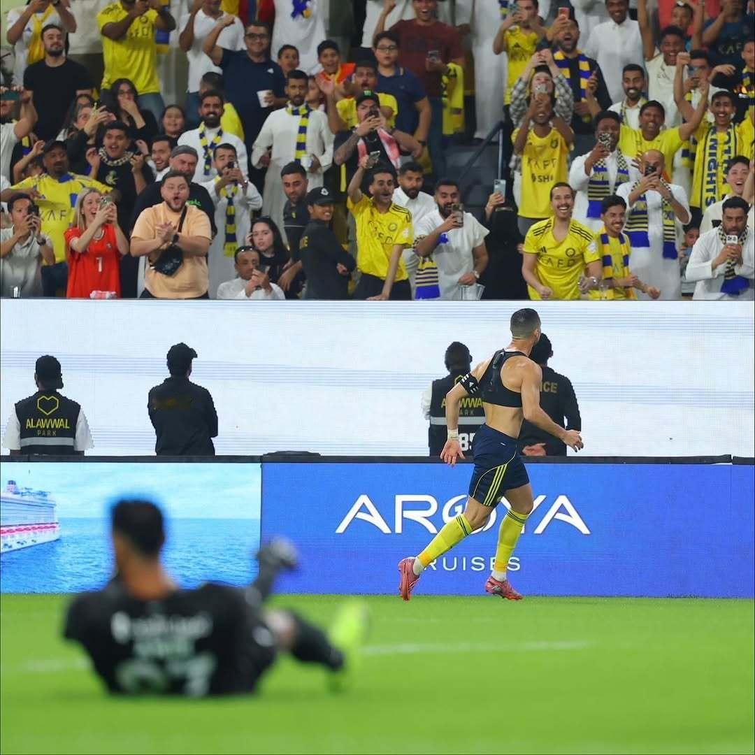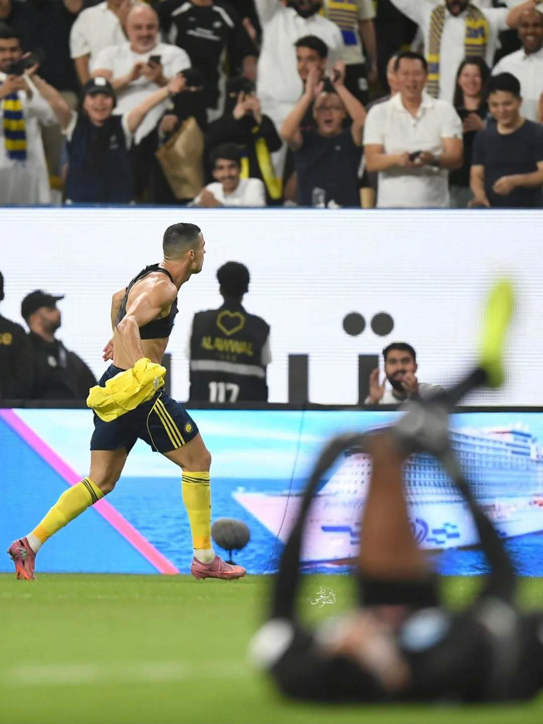 C罗[超话]利雅得胜利5比1哈萨征服C罗世界波破门脱衣抛衣晒衣穿衣的全过程老天这