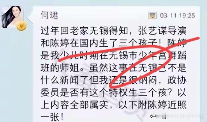 当年举报张艺谋超生的那个人,现在后悔了吗? 就是这位演员何珺,当初据曝光了张艺谋有三个孩子这件事,后来因为超生被罚款了748万。 事后张艺谋接受采访,说特别感谢这件事的曝光,因为从此卸去了压力,可以光明正大的和孩子们在一起,没有曝光的时候看见孩子从对面走过来都不敢拉手。 反观这位何珺,一直混的不温不火。