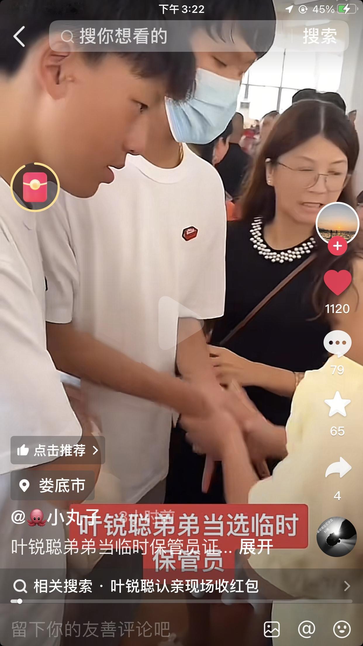 叶锐聪的弟弟今天的任务让人羡慕,弟弟今天是财务部部长弟弟给哥哥背了个包收红包的,给哥哥当保管员。 弟弟很有礼貌,孙海洋老婆彭四英给的礼物斐乐衣服鞋子这些,弟弟马上接过去帮忙拿。不单是帮拿红包[呲牙] 广东习俗,长辈在特别的日子或是过节一般都会给个“利是”,寓意“利利是是”,是个祝福,不论金钱多少,看个人经济情况和心意,有些没有经济能力的老人给的说不定只是一、二十元也有可能。