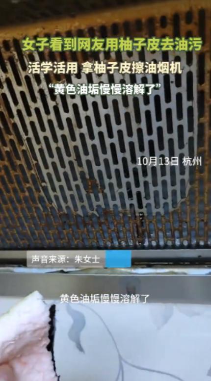 “长见识了!”10 月 13 日,浙江杭州,一女子玩手机时,发现有人用柚子皮去油污,效果看起来非常好她盯着屏幕里被擦得锃亮的油烟机,想起自家灶台旁积了两年的油垢,上周用化学清洁剂刷了半小时都没彻底干净,还呛得直咳嗽。刚好茶几上放着刚吃完的红心柚子,她随手撕下内侧带白色海绵层的果皮,没抱任何期待地往油烟机滤网蹭去。没想到指尖刚用力,原本硬邦邦的黄色油垢竟然顺着果皮滑落,留下一道干净的痕迹,连带着周围的油渍也变得柔软易擦。她越擦越起劲,特意避开电路接口,把灶台边缘、瓷砖缝隙都擦了个遍,二十分钟后厨房焕然一新,手上还带着淡淡的柚子清香。朱女士后来跟朋友说,最惊喜的是擦完不用反复冲洗,用湿抹布一擦就没残留,不像之前用清洁剂总担心有化学味道。浙江农林大学食品科学与工程学院 2023 年发布的《柑橘皮渣资源化利用研究》显示,柚子皮含有的柠檬烯和黄酮类物质,能快速分解动植物油脂,清洁力堪比普通去油剂。网友看到她分享的对比视频,有人留言 “我家油烟机是老顽固,试了柚子皮 + 小苏打,居然把半年的油垢清干净了”,也有人说 “轻微油污管用,五年以上的老油垢还是得先软化”。杭州市生态环境局 2024 年发布的《家庭环保清洁指南》中提到,柚子皮、橘子皮等天然材料含有的植物精油,不仅去油效果好,还能减少化学清洁剂对水体的污染。朱女士特意做了个小测试,用柚子皮清洁后的厨具,用试纸检测 pH 值呈中性,不像某品牌清洁剂那样偏碱性,对不锈钢表面也没有腐蚀痕迹。小区里的保洁阿姨看到后,也学着收集柚子皮晒干,揉碎后装在纱布袋里擦玻璃,说 “比抹布还好用,还不用花钱买清洁球”。你们有没有试过用水果皮、蔬菜根这类天然材料做清洁呀,有没有遇到过让人惊喜的效果?