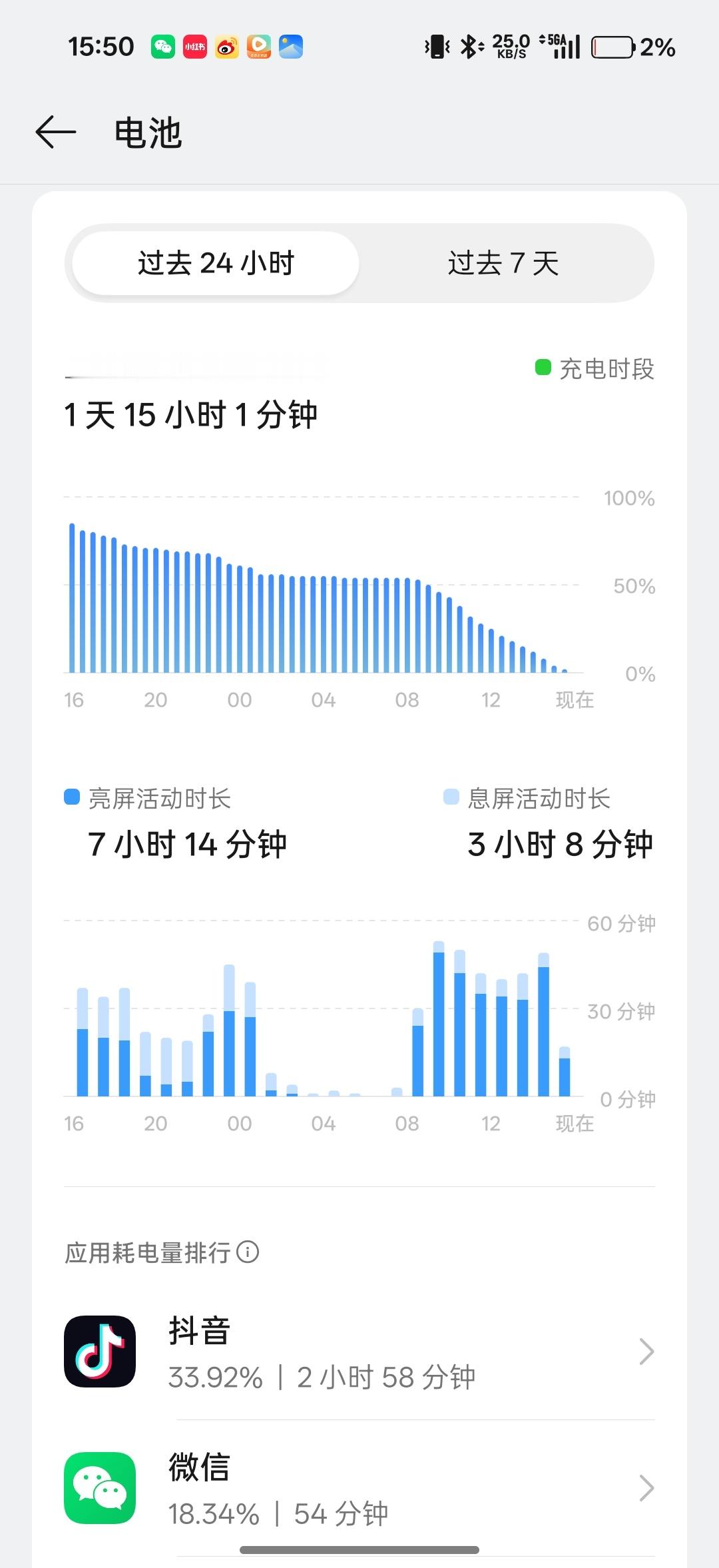 昨天亮屏3小时46分钟,今天亮屏5小时4分钟,加起来9个小时亮屏时间。