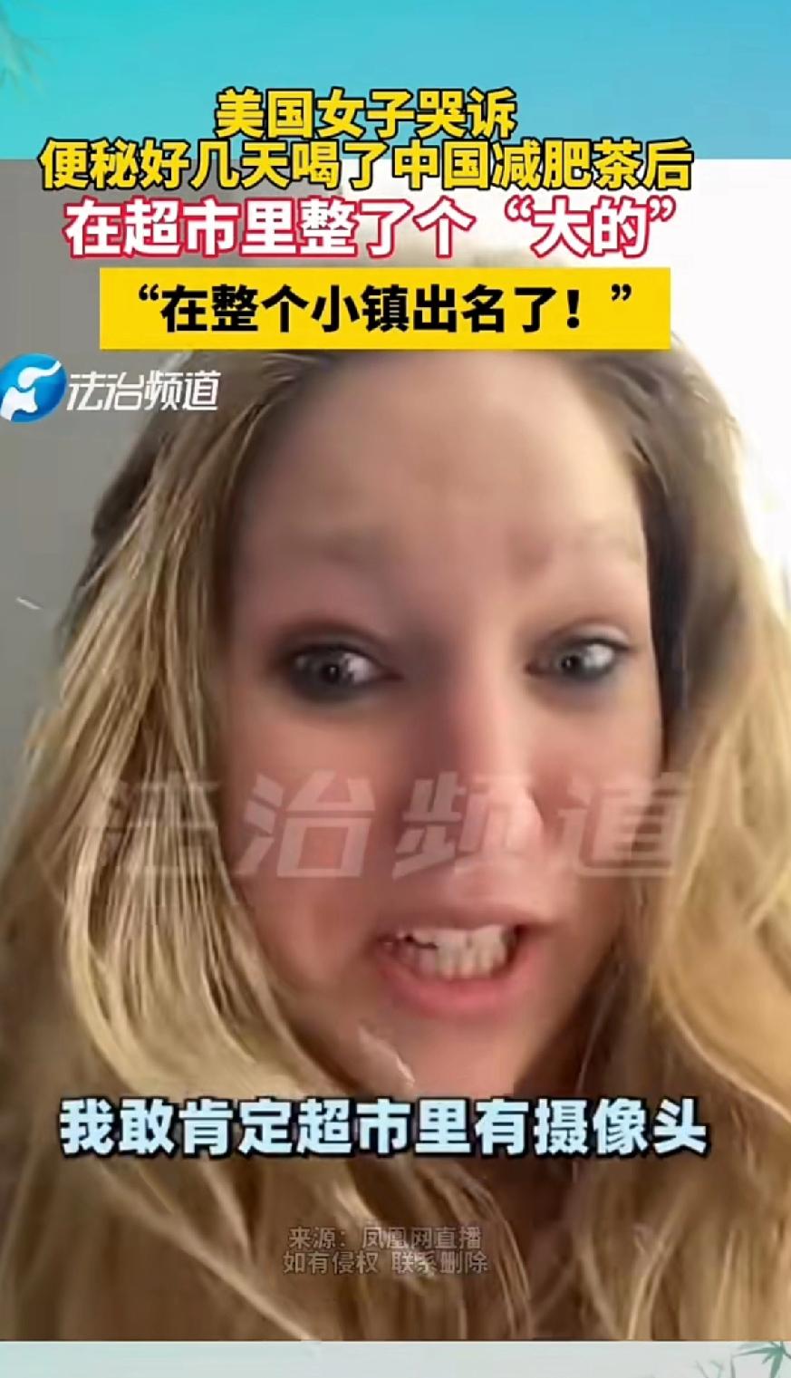 美国女子哭诉“便秘”好几天,喝了中国的绿色减肥茶后,在沃尔玛超市整了个“大的”,