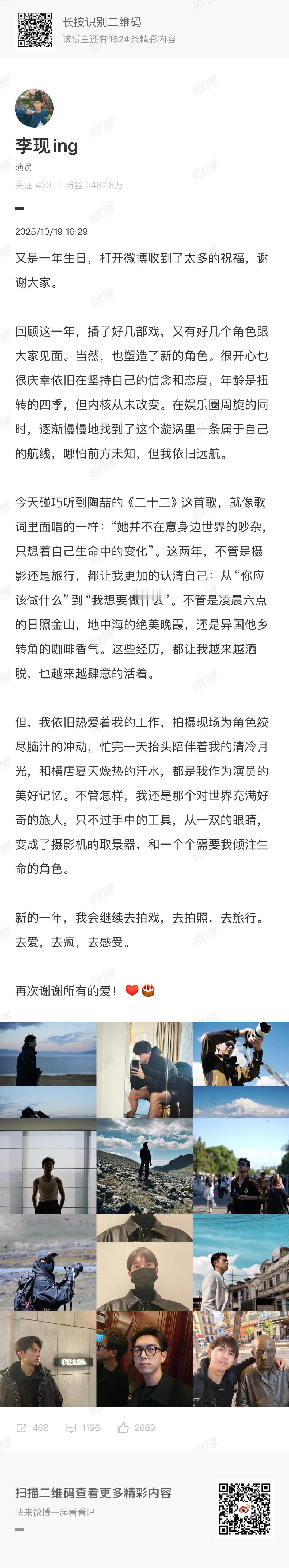李现34岁生日发文李现34岁生日长文 李现34岁生日发文!李现[超话] 生日快乐