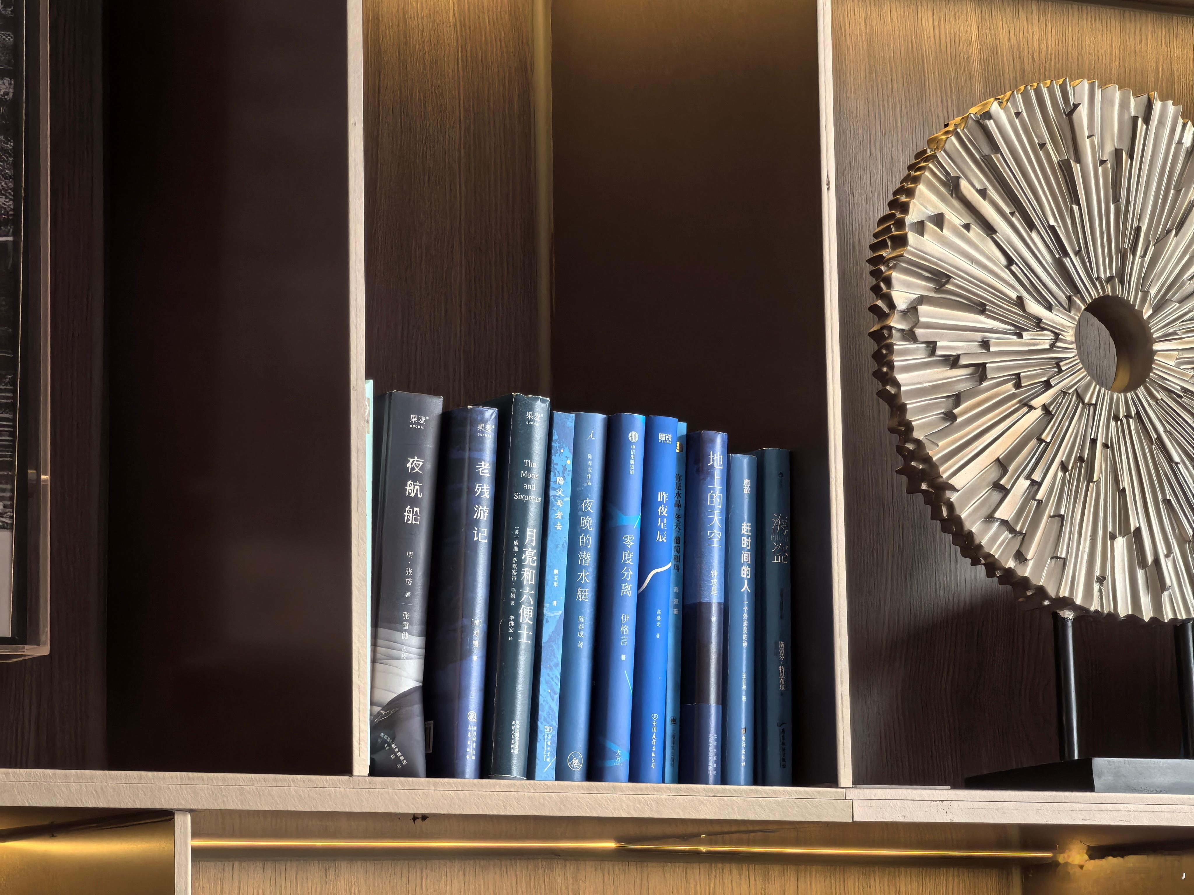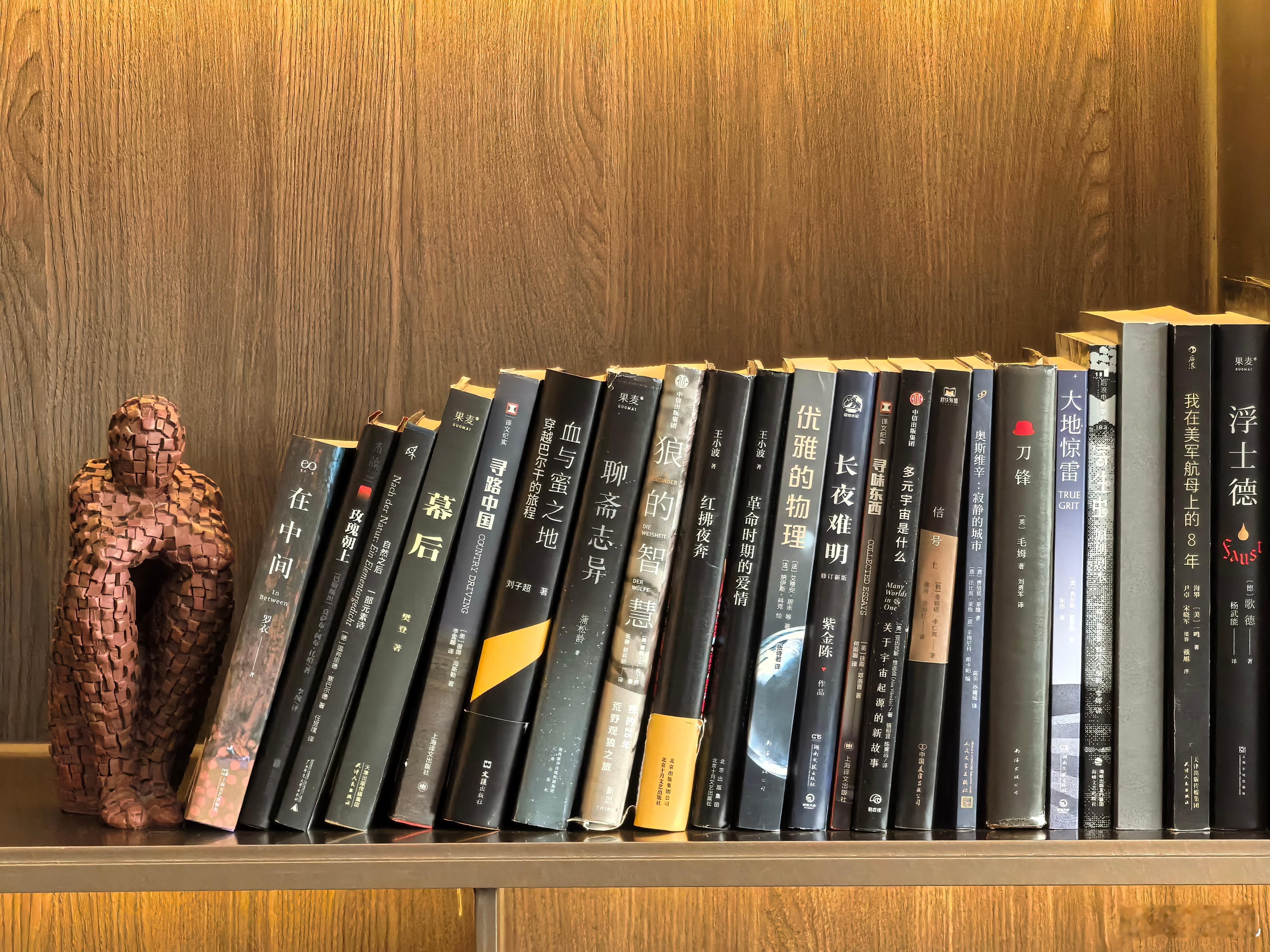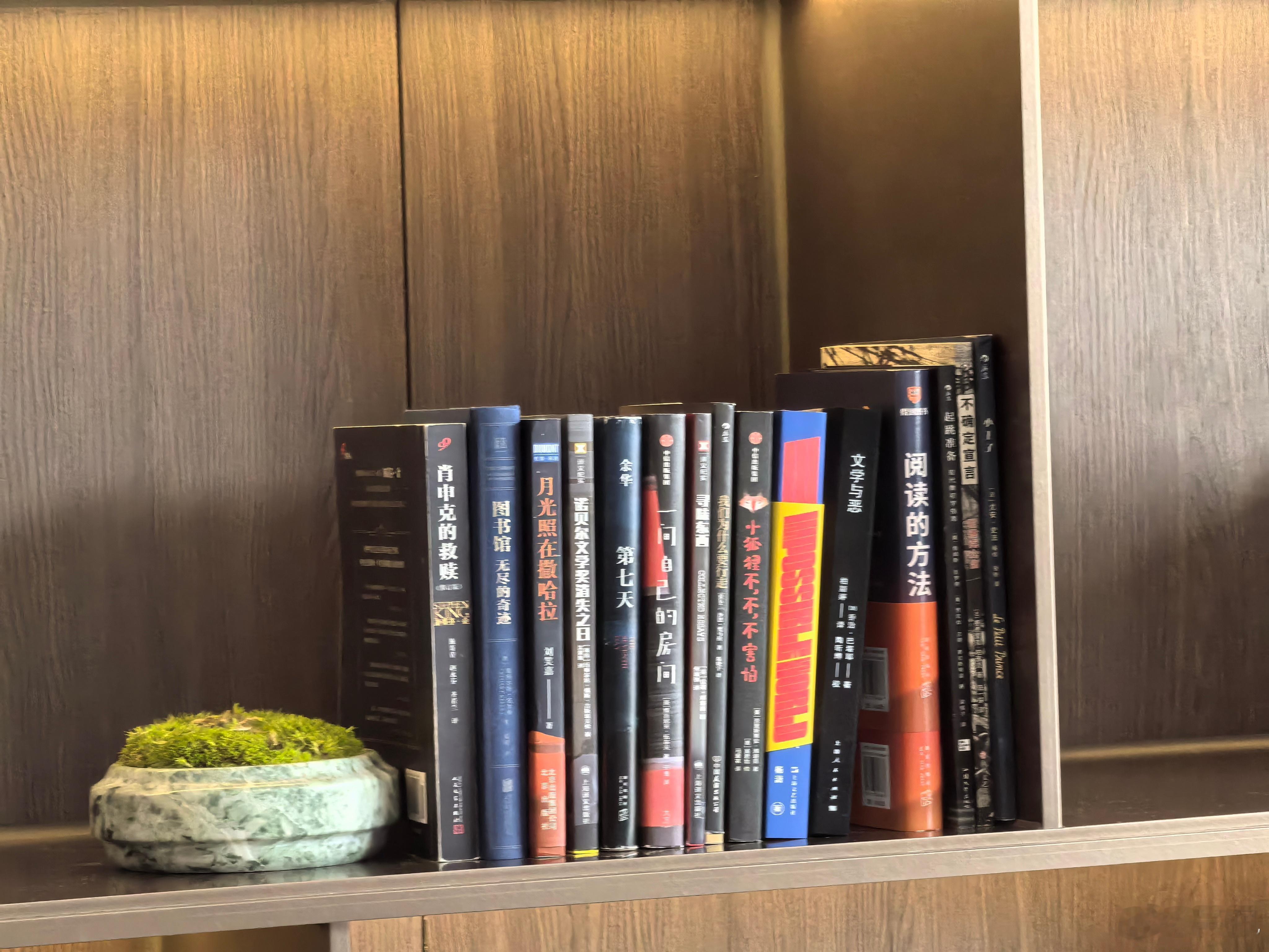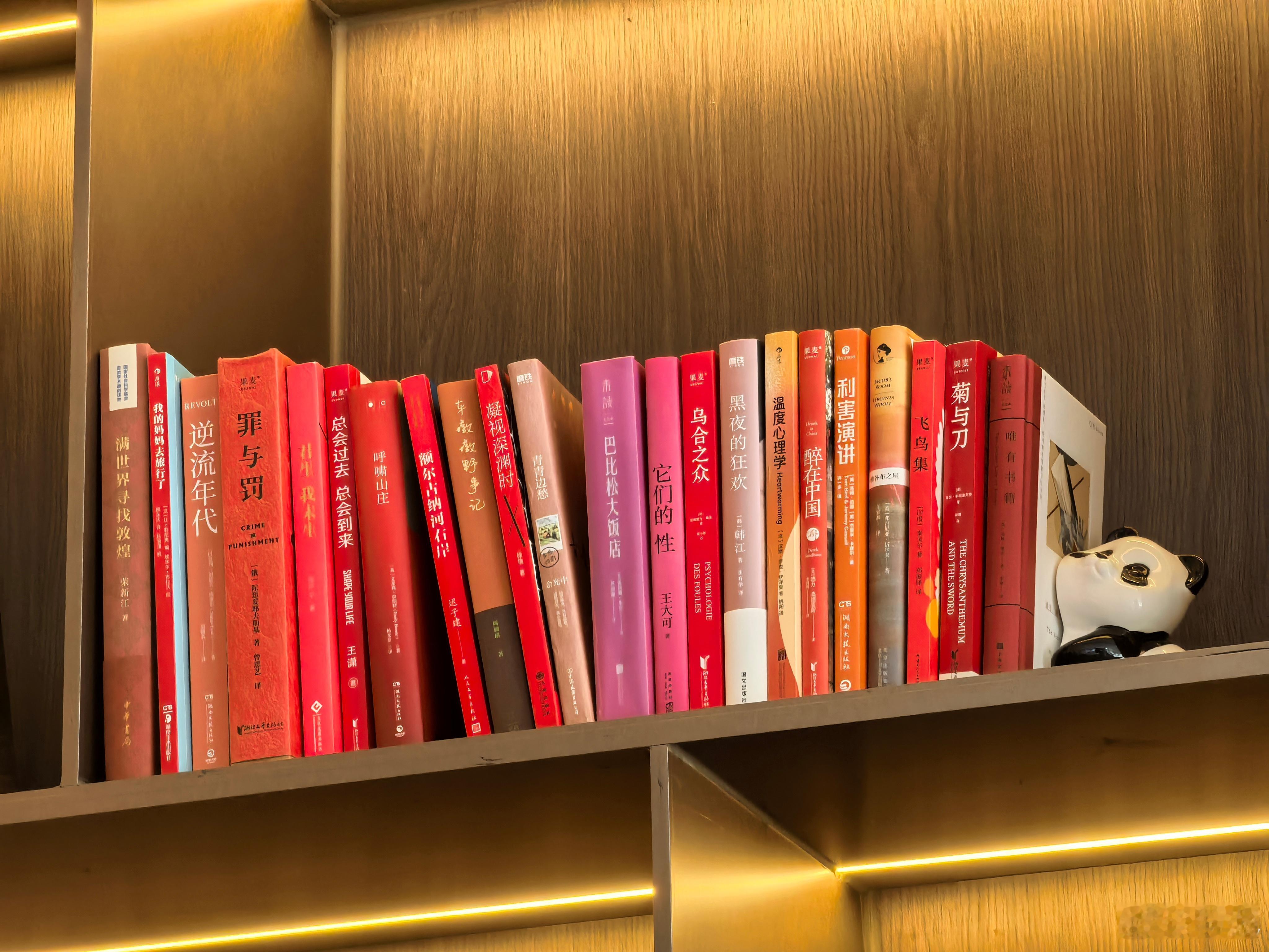 这个人整理书架的逻辑很简单粗暴——按颜色区分。