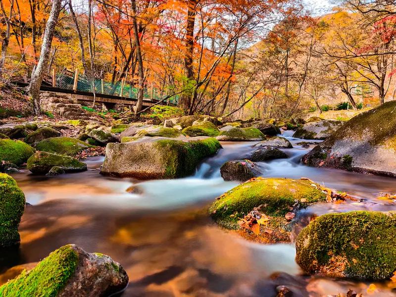 【10月份到辽宁本溪旅游看什么】 10月去辽宁本溪旅游,老边沟风景区可不能错过。10月10日这儿秋景如画,漫山的色彩交织在一起,吸引众多游客纷至沓来。 要是想看枫叶,关门山水库景区值得一去。虽说今年国庆期间气温高,10月14日去时高速两侧山大多还是绿的,景区里黄色占了主角,但“枫王”很给力,红得艳丽。门票90元,即便不是节假日,赏枫的人也不少。漫步木栈道,说不定还能找到“枫王枫后”,带着家人朋友一起,即便枫叶没全红,游玩也会很开心。
