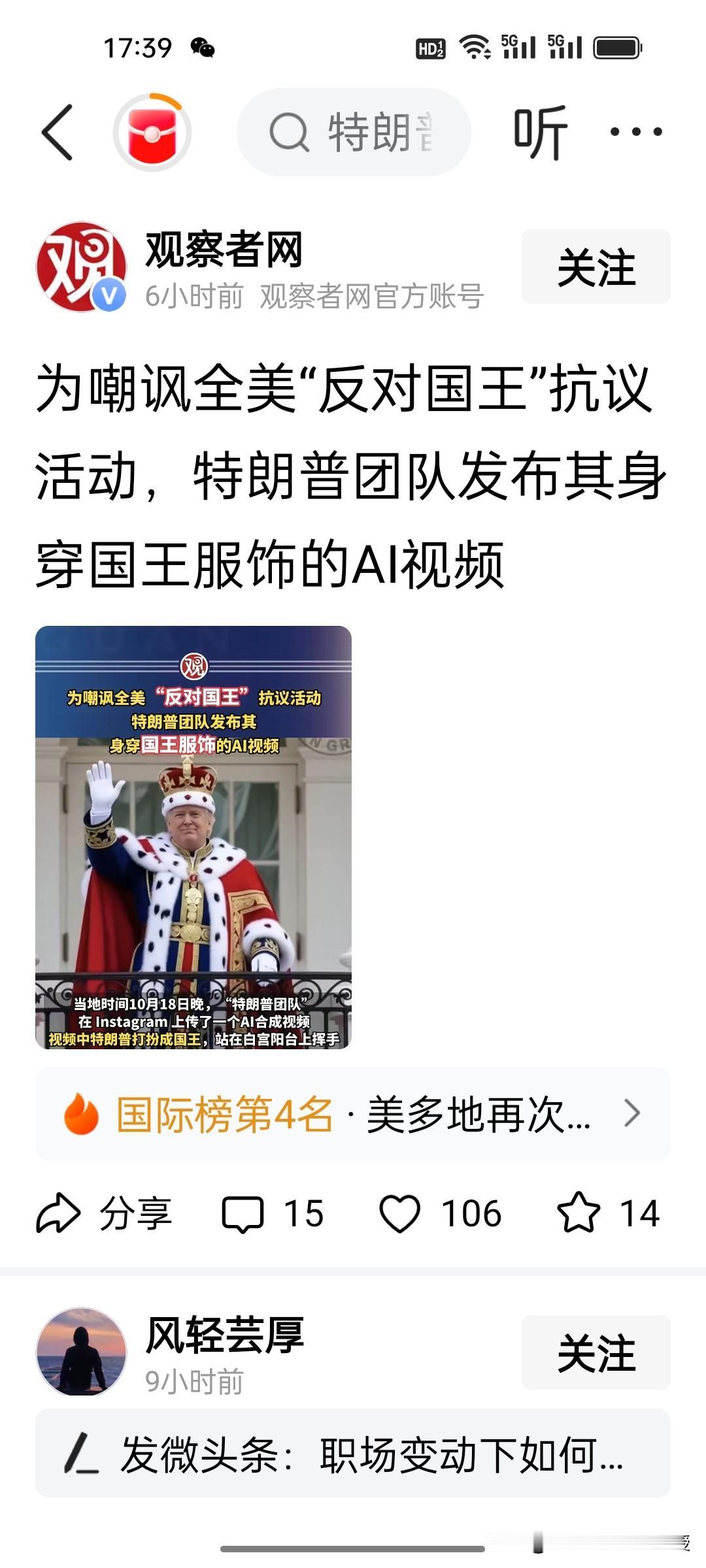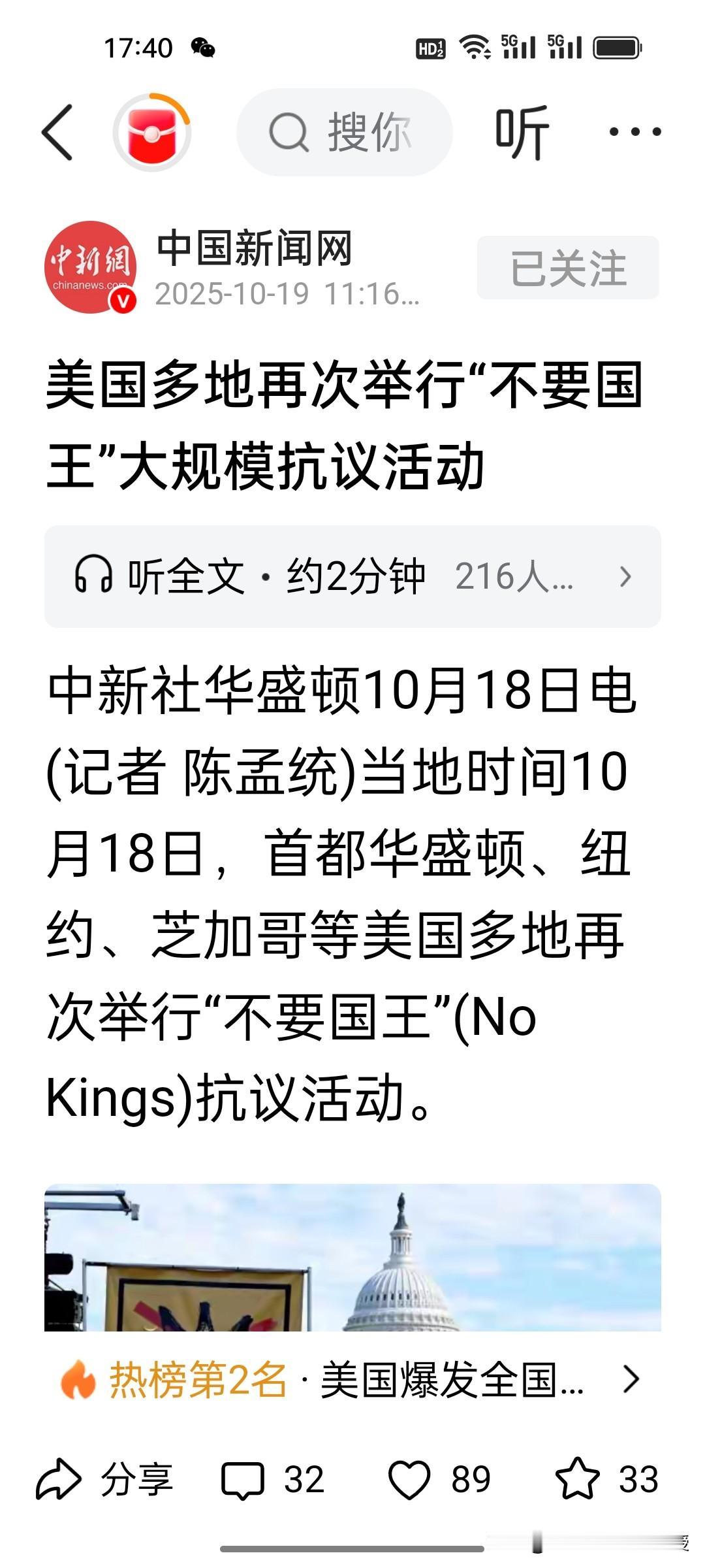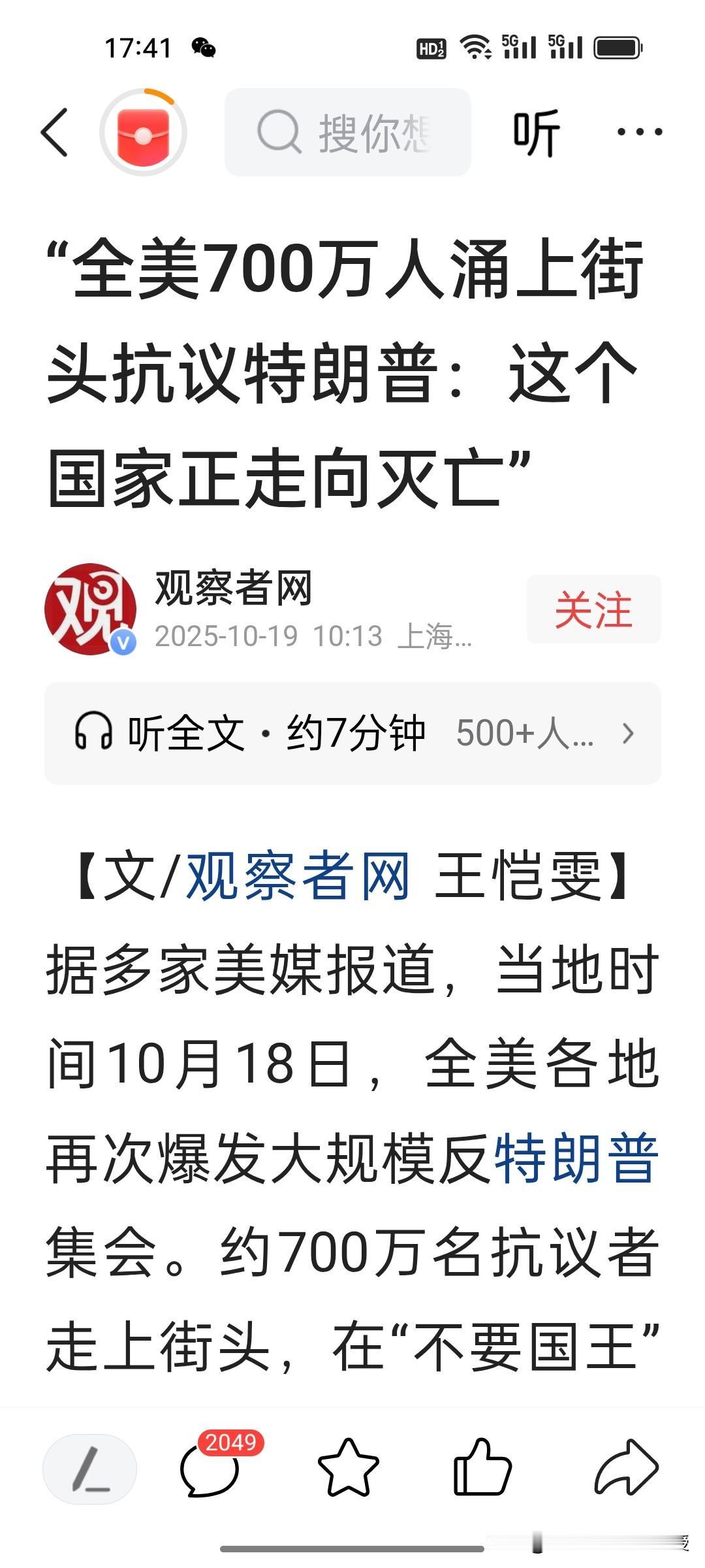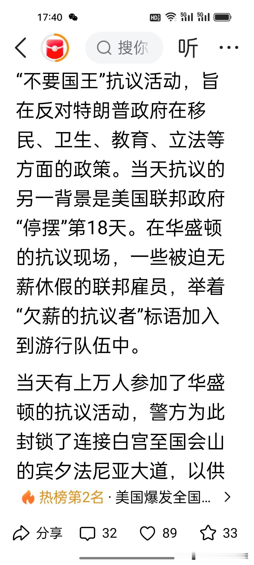 谁也没想到,这个周末,美国爆发了史上最大规模的抗议活动,700万人在美国各大城市走上街头高喊“不要国王”,抗议特朗普的各项政策以及政府停摆。可是特朗普团队不想解决问题的办法,反而发AI视频,特朗普穿着国王的衣服,戴着王冠向抗议示威人群投放泥浆。这个视频真的有点”你能奈我何”的嚣张气息。 突然又想到前几天,特朗普团队的那些成员对特朗普的赞美之词溢于言表,个个戏精上身,特朗普还真的是穿着“皇帝的新衣”,身边没有一个人说真话,还整天自我陶醉,就想着画K线在资本市场挣钱。 我想到昨天《沉默的荣耀》大结局中,无党派人士,吴石将军对蒋经国说的一句话,“蒋先生的党国,人人心中有自己,大多心中有派系,少数心中有党国,唯独无人心中有人民”。美国这次爆发全国性的大规模反对特朗普的抗议活动正是特朗普团队“心中无人民”最直接的诠释。美国爆发全国性示威 700万人参与