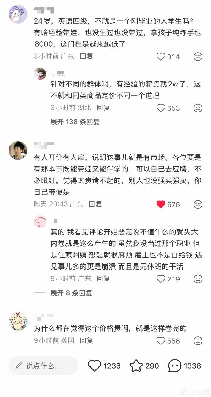 月嫂的价格贵是应该的。一天二十四小时的工作量X30天无休。对按八小时工作制,月嫂的薪资是乘以三的,人家是三班倒的工作量。