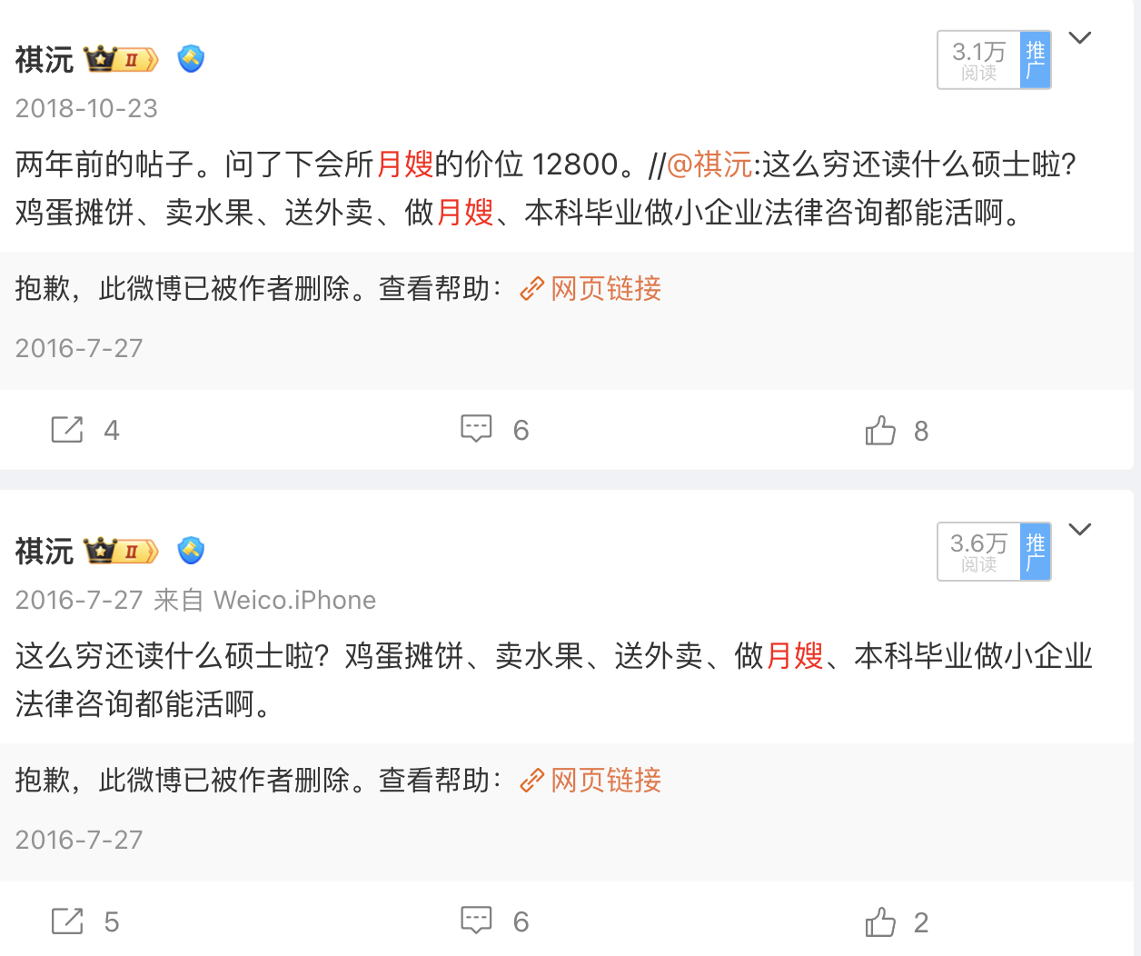 2016年的时候我就说过,如果穷到活不下去直接去做月嫂,育儿嫂。