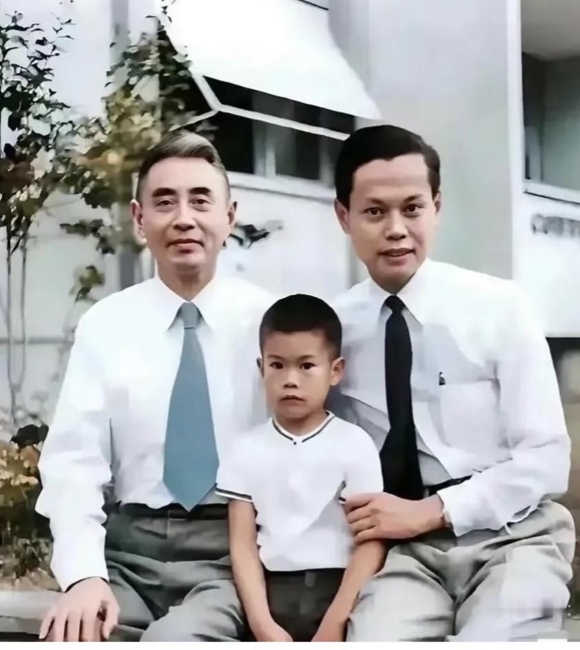 杨振宁一家三代合影,极其珍贵啊!左边是父亲杨武之,中间儿子杨光诺,右边当然是杨振宁了。三代人个个相貌俊逸,尤其父亲杨武之更帅气! 杨光诺的名字是祖父杨武之取的,名字寄托了祖辈期望,寓意光耀诺贝尔。 杨振宁,英气勃勃,目光炯炯,一看就很聪慧。他和父亲都身着白衬衣,系着领带,有儒雅之气。小光诺神情严肃,眼神忒像杨振宁。 杨武之,大学教授,培养了许多人才。杨振宁从小受到父亲教育,成绩更是斐然!