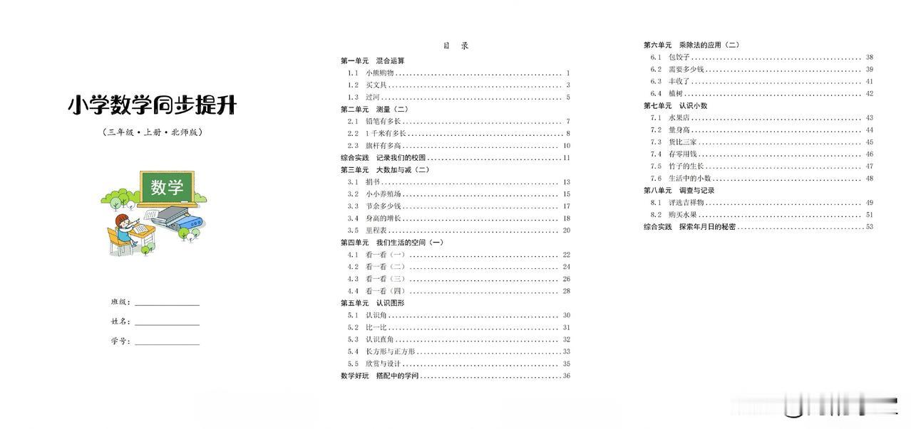 小学数学同步提升(1~3年级)【北师版2024版】 精准同步,学练相随!