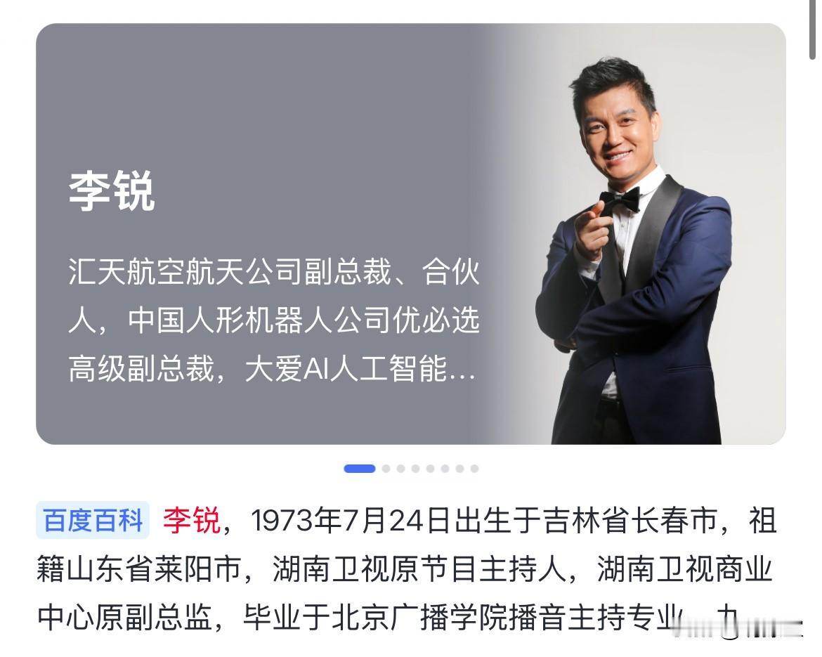 李锐真的傻? 马上都要退休的年纪辞职去创业 李锐今年都52岁了 眼看就要干到头领退休金了 他直接从湖南台辞职了 更恐怖的是 我都还没听到他辞职的消息 就直接看到了他创业第一笔订单超12亿 那可是12个亿 村长在湖南台干一辈子 不如离台半个月 我们这些觉得他傻的人才是真的傻 打开百度一看 湖南商业中心副总监 人家大半辈子挣得不是看 是资源人脉!