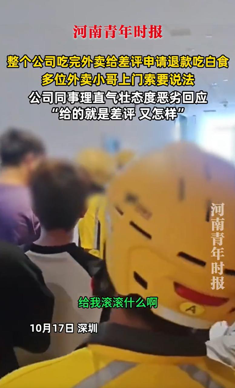 深圳,有网友爆料,某公司员工吃完外卖后,多人突然统一口径申请退款,坚称“根本没收