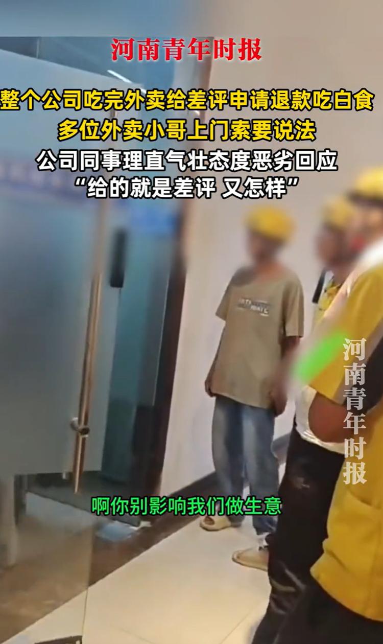 深圳,有网友爆料,某公司员工吃完外卖后,多人突然统一口径申请退款,坚称“根本没收到餐”。外卖员们拿着送达证明上门理论时,公司员工却理直气壮:“给差评怎么了?”面对质问,公司人员不仅毫无愧意,反而斥责外卖员“影响做生意”。餐盒还堆在垃圾桶里,退款申请却已提交成功,这种钻系统空子的行为,已经超出了普通纠纷的范畴。外卖员认为这就是想“吃白食”,关键还给了差评,看似是几十份外卖的小事,折射出的却是某些企业对诚信的漠视。 视频中,多名外卖员与一家公司员工发生激烈争执,起因是该公司员工在点外卖、食用后,集体申请退款,声称外卖未送达。 这一行为迅速引爆网友怒火,被指责为“吃白食”的典型。 视频中主角是位于某城市中心商务区的中小型公司迅捷科技(化名),主要从事互联网营销业务,公司员工日常工作中经常通过外卖平台订餐。 2025年10月17日,公司员工通过某外卖平台点了午餐,由多名外卖员分批次配送。 据外卖员的说法,所有订单均在规定时间内送达公司前台,并由公司员工签收。 然而,令人意外的是,当天下午,迅捷科技的员工集体在外卖平台上申请退款,理由一致为“外卖未送达”。 退款申请数量较多,外卖平台系统自动处理了部分退款,导致多名外卖员被扣罚工资和积分。 这些外卖员大多为个体承包者,收入本就微薄,退款行为直接影响了他们的生计。 退款事件发生后,有外卖员试图通过平台客服沟通,但未得到解决。 于是,有外卖员联合其他受影响的外卖员,前往迅捷科技公司办公地点,要求解释。 在迅捷科技公司门口,外卖员遇到了公司员工,员工们态度强硬,不仅拒绝承认外卖已送达,还出口斥责外卖员“多管闲事”。 视频记录显示,有员工反复喊道:“给的就是差评,又怎样?你们这些送外卖的别在这里闹事!” 外卖员回击道:“吃白食还有理了是不是?这么大一个公司吃白食?丢不丢人?” 有员工当即反驳:“别挡在这里影响我们做生意!” 双方言辞激烈,引来路人围观。 冲突视频被上传到社交平台后,迅速引发热议。 有人谴责迅捷科技的行为,指责其利用平台规则漏洞进行欺诈,还分享类似经历,称这种“恶意退款”现象在餐饮行业屡见不鲜,但公司集体行为尤为恶劣。 有人呼吁外卖平台加强审核,也有人建议法律介入。 还有人认为现在事情并不明朗,无法评论对错,还是让子弹在飞一会儿。 那么,从法律角度,这件事如何评价呢? 1、外卖员如已完成配送并有证据表明餐品已被公司方签收,员工在食用后以未送达系统性申请退款涉嫌诈骗。 《民法典》第五百零九条,当事人应当按照约定全面履行自己的义务。 当迅捷科技员工通过外卖平台成功下单并支付款项时,其与外卖商家之间的餐饮服务合同即告成立,同时与配送员之间形成了事实上的运输服务合同关系。 外卖员将餐食准时送达公司前台并由对方接收,标志着合同的核心义务已经履行完毕。签收行为是履行完毕的关键证据。 如查实,在合同已履行完毕的情况下,迅捷科技员工集体声称“未送达”,则属于故意告知虚假情况。 《治安管理处罚法》第四十九条规定,盗窃、诈骗、哄抢、抢夺、敲诈勒索或者故意损毁公私财物的,处五日以上十日以下拘留,可以并处五百元以下罚款;情节较重的,处十日以上十五日以下拘留,可以并处一千元以下罚款。 这些员工如查实存在在送达情况下,继续以未送达理由申请退款,平台系统基于虚假信息处理退款,则这些员工的行为属于诈骗,即便未达到刑事追责标准,也面临最高15日拘留及最高1000元罚款。 2、公司员工如恶意给差评,则涉嫌侵犯他人名誉权益。 《民法典》第一千零二十四条规定,民事主体享有名誉权。任何组织或者个人不得以侮辱、诽谤等方式侵害他人的名誉权。 本案中,视频中,外卖员认为公司员工系虚假事实的差评,且公司员工态度恶劣,存在辱 骂等行为,如查实,则该等差评等行为,降低了外卖员的社会评价,涉嫌侵犯了外卖员的名誉权。 外卖员作为受害人,依法有权请求停止侵害、赔礼道歉、消除影响,并可以要求赔偿损失。 3、本案中,迅捷科技公司与外卖员之间存在集合同违约、治安违法、不当得利、名誉权侵权于一体的复合型纠纷。 对外卖员与商家,应立即固定证据配送记录、签收证明、现场录音录像、网友评论截图等,首先通过外卖平台官方渠道申诉,要求平台撤销退款、恢复评价、封禁恶意账号。 若平台解决不力,也可向市监局投诉,报警,或直接向法院提起诉讼,主张返还餐费、赔礼道歉、消除影响及赔偿相应的经济损失。 迅捷科技公司如认为外卖员指控不实,且影响了公司正常经营等,也可以采取相应维权措施。 对此,您怎么看?