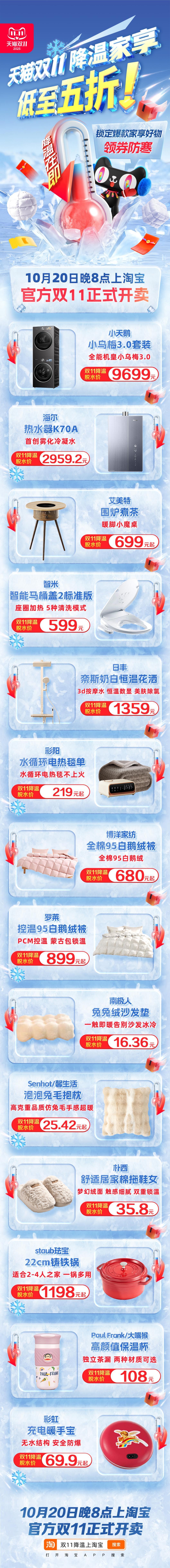 今晚8点天猫双11降温爆款5折起 天猫双11降温就补低至5折 最近降温真的挺快的,一直和朋友吐槽今年这么冷,秋冬衣服不得又花一大堆啊。结果刷到一直关注羊毛党群,突然炸出一句:购物车里那件舍不得买的大衣,刚刚一看居然降了300!