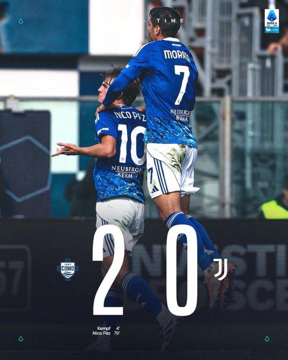 最终科莫2:0战胜了尤文图斯罗马0比1国际米兰热点现场
