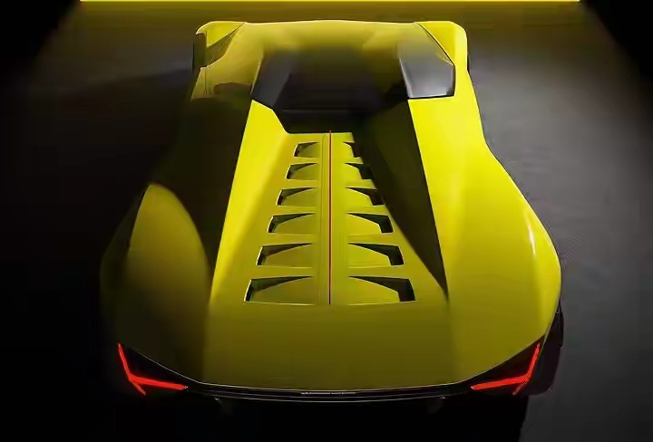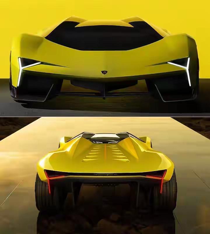 ● 外观:前脸保留兰博基尼标志性六角形轮廓和Y形日间行车灯,线条更锐利,下包围空气动力学设计堪比赛车;侧面轮廓简洁,五辐轮圈有创意,玻璃穹顶座舱与车身线条融合,似战斗机驾驶舱;车尾设计大胆,巨大扩散器是视觉焦点,后甲板12个百叶窗式开口暗示可能的V12发动机布局。