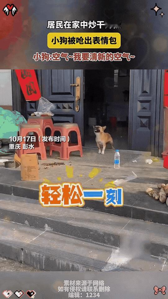 万物皆有灵性!重庆,主人在家中炒干辣椒,家中的小狗直接被呛成表情包,简直是既搞笑又心疼它。这可真是吃了狗鼻子灵的亏了,它直接闭着眼冲着天空使劲呼吸新鲜空气,好像是立刻需要这一口仙气一样。网友:以后家里这门 sei爱看sei看! 重庆男子的厨房烟火气,把家里小狗坑惨了!酷爱吃辣的他,和家人全副武装炒干辣椒,却忘了屋里还在熟睡的毛孩子。呛人的辣气瞬间弥漫,直接把小狗从梦中呛醒,开启了连环打喷嚏模式。 等主人炒完菜冲到院子,只见小狗紧闭双眼,仰着脑袋对着天空猛吸空气,那生无可恋的模样,每一个表情都堪称行走的表情包。鼻子灵敏本是小狗的优势,此刻却成了“软肋”,眼泪汪汪的样子既搞笑又让人心疼。 想必小狗心里满是委屈:“我招谁惹谁了?鼻子灵也不是我的错!你们故意的吧,还笑!以后这家门我再也不看了!” 主人看着手足无措,只能默默围观这只被辣椒“制裁”的小可爱。 还好小狗恢复得快,没多久又活蹦乱跳。这一幕被网友调侃“以后炒辣椒请给小狗戴防毒面具”,原来万物有灵的瞬间,除了暖心,还能这么有笑点!