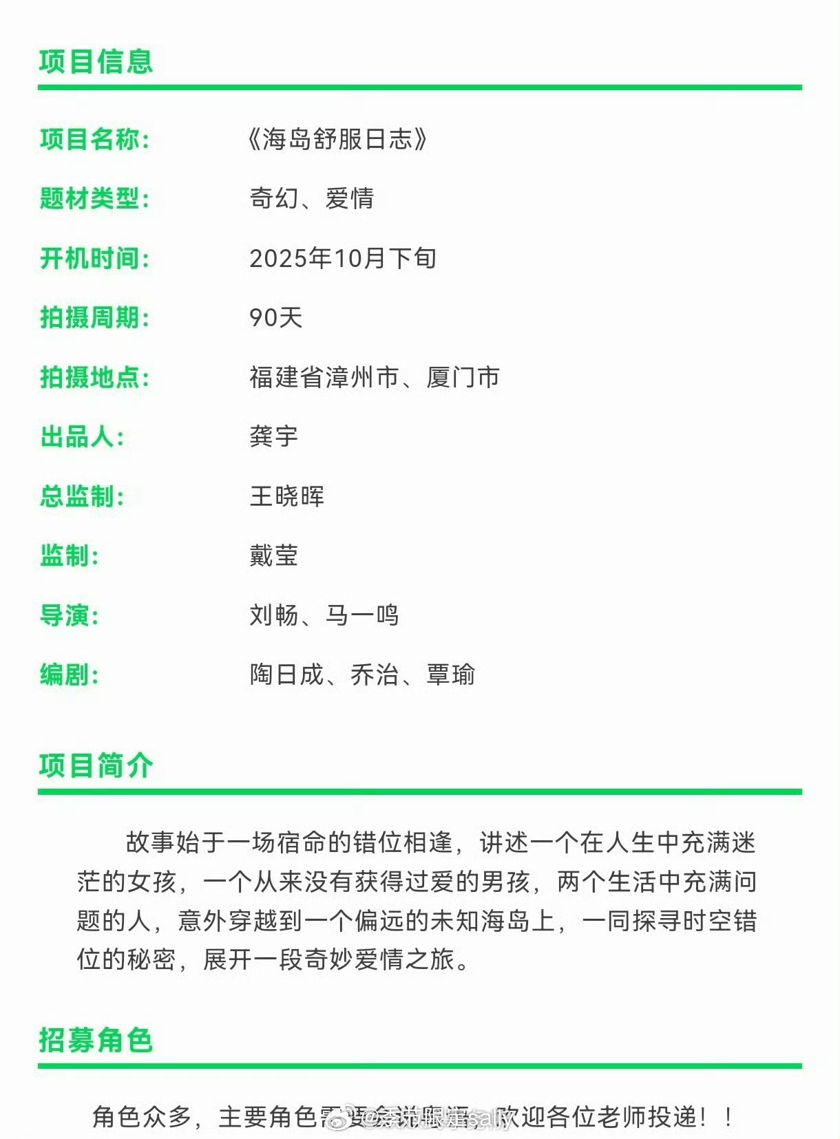 🍉爱奇艺🥝《海岛舒服日志》开机在即