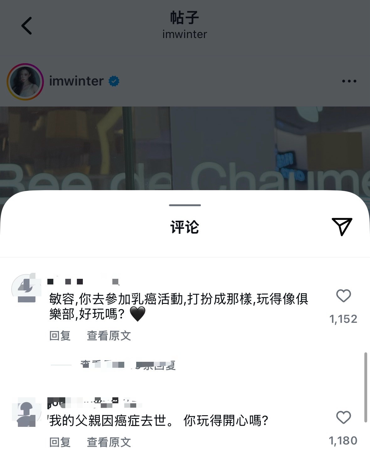 参加了W Korea主办的乳腺癌慈善晚宴后女爱豆们的INS相关评论区
