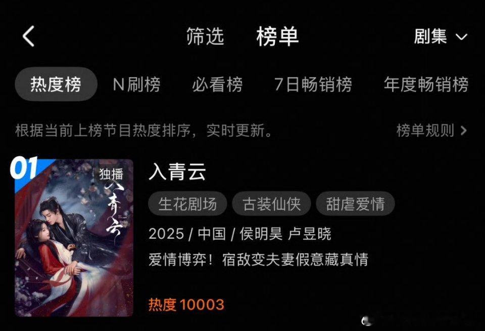 侯明昊入青云热度破万,达成 95 生👖唯 1 三部一番作品全破万,虽然道路艰难但还是做到了,妥妥的扛剧生[耶]