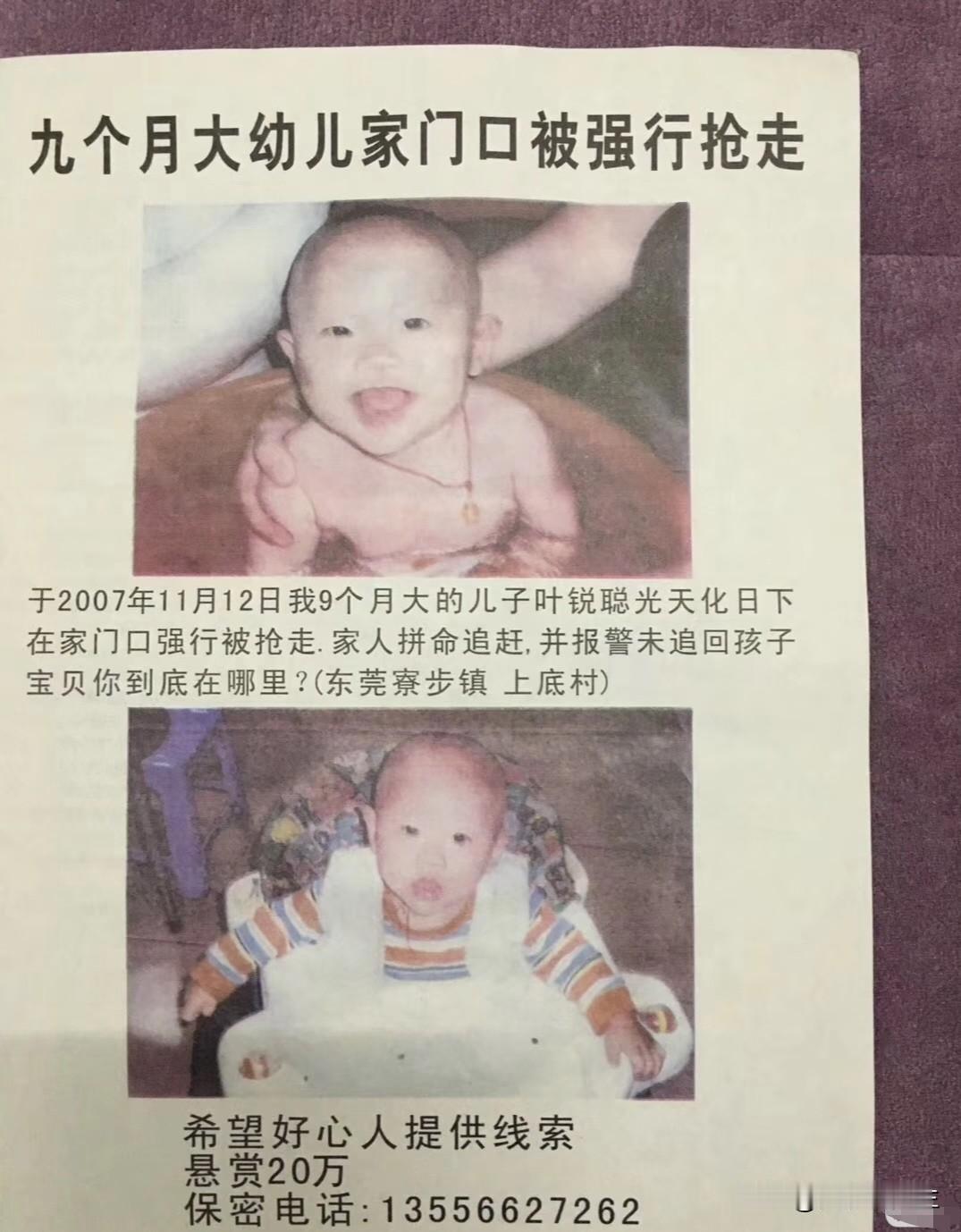 万万想不到, 被抢18年的叶锐聪真的找到了。 不是靠传统的DNA比对, 是警察用新办法摸到了线索。 2007年11月,广东东莞寮步镇,9个月大的叶锐聪在自家门口玩耍时,被面包车上的人一把抢走。母亲邓惠东疯了似的追出去,连跑几条街,鞋跑掉了,车影子也没追上。 十八年来,她没停下过。印传单、上电视、悬赏二十万,全国各地跑。有时听到一点风声,说哪个地方有个孩子像聪聪,她连夜坐车赶过去,一看,不是。回来坐在路边,能哭三个钟头。 她枕头底下一直压着儿子小时候的照片,每天枕着睡,心里才踏实点。 为了攒钱找孩子,也想着找到后能让他过好点,她一天打三份工:清早去扫厕所,中午做陪读,晚上蹲在餐馆后厨洗碗。别人问她年纪轻轻怎么干这个,她只说“我爱干”,其实是没有办法。 2025年10月12日,邓惠东在东莞公安局见到了儿子。叶锐聪现在是个一米八三的大学生,很瘦,长得像妈妈。见面只有十分钟,邓惠东手有点抖,没敢多问,只小声说“多喝汤,好好吃饭”。 她怕问多了吓到孩子,“他是我的命”。 这十几年,警察找孩子的法子确实多了。除了DNA库,人脸识别这种技术,对叶锐聪这种被抢时太小、自己都不记得身世的孩子,尤其有用。 邓惠东的团圆,让很多还在找孩子的家长觉得,下次希望可能就轮到自己。