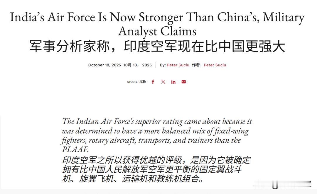 印度的空军超中国?2025年10月,印度网上突然流传一种说法,说印度空军排世