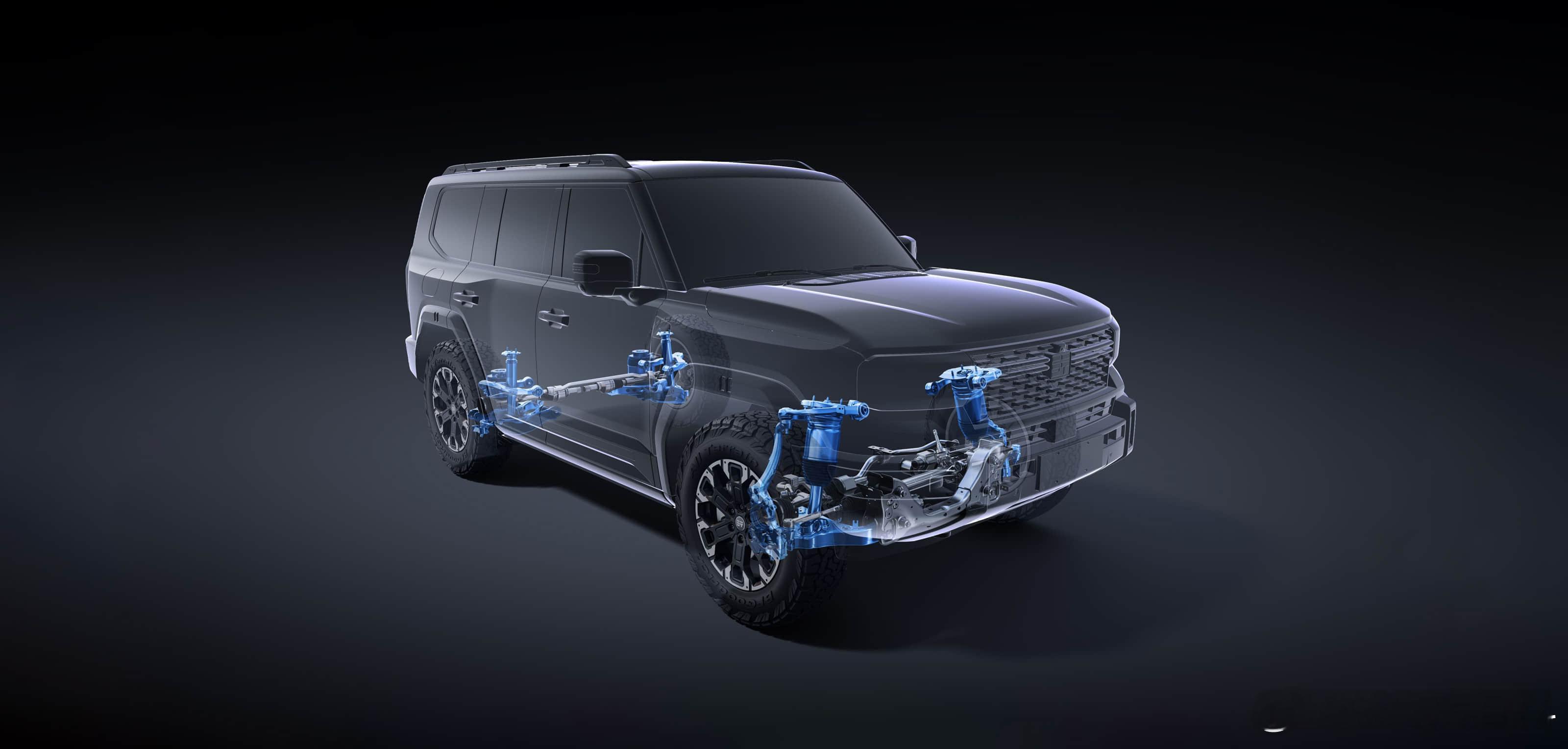 底盘采用100%高强钢大梁,扭转刚度>10000N·m/deg,前后桥标配牙嵌差速锁,双叉臂四轮独立悬架标配空悬+CDC;至尊航行版还具备水中航行能力,方舟两栖全域密封系统搭配800V水下推进器,在前几天完成了横渡长江的壮举