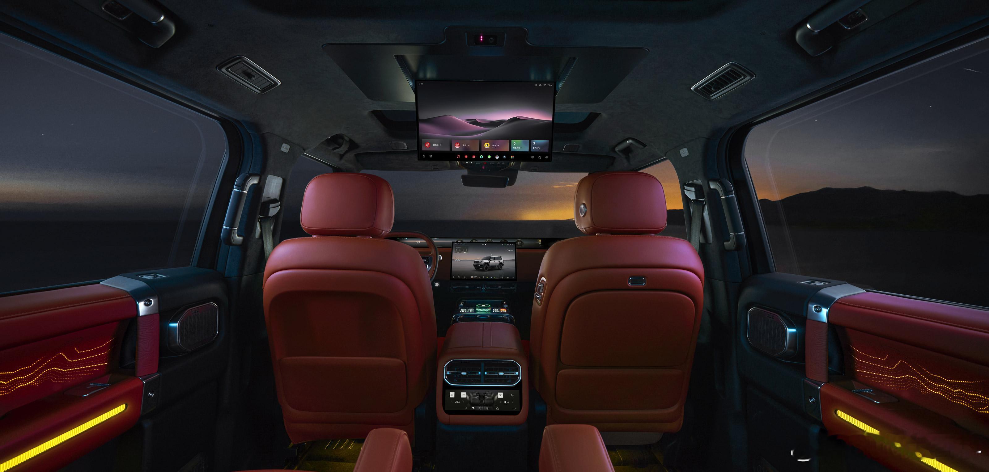 比如前排采用的35.4吋3K纵横天际屏,可视宽度900mm,高级感十足的同时,也能起到类似HUD抬头显示的观察视角