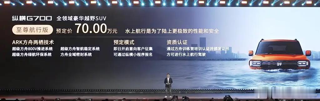 今晚捷途纵横G700 正式上市,全系4款车型,指导价32.99-41.49万元,限时置换价30.49-38.99万元,此外还新增至尊航行版,预定价格70万元,购买前需要额外培训
