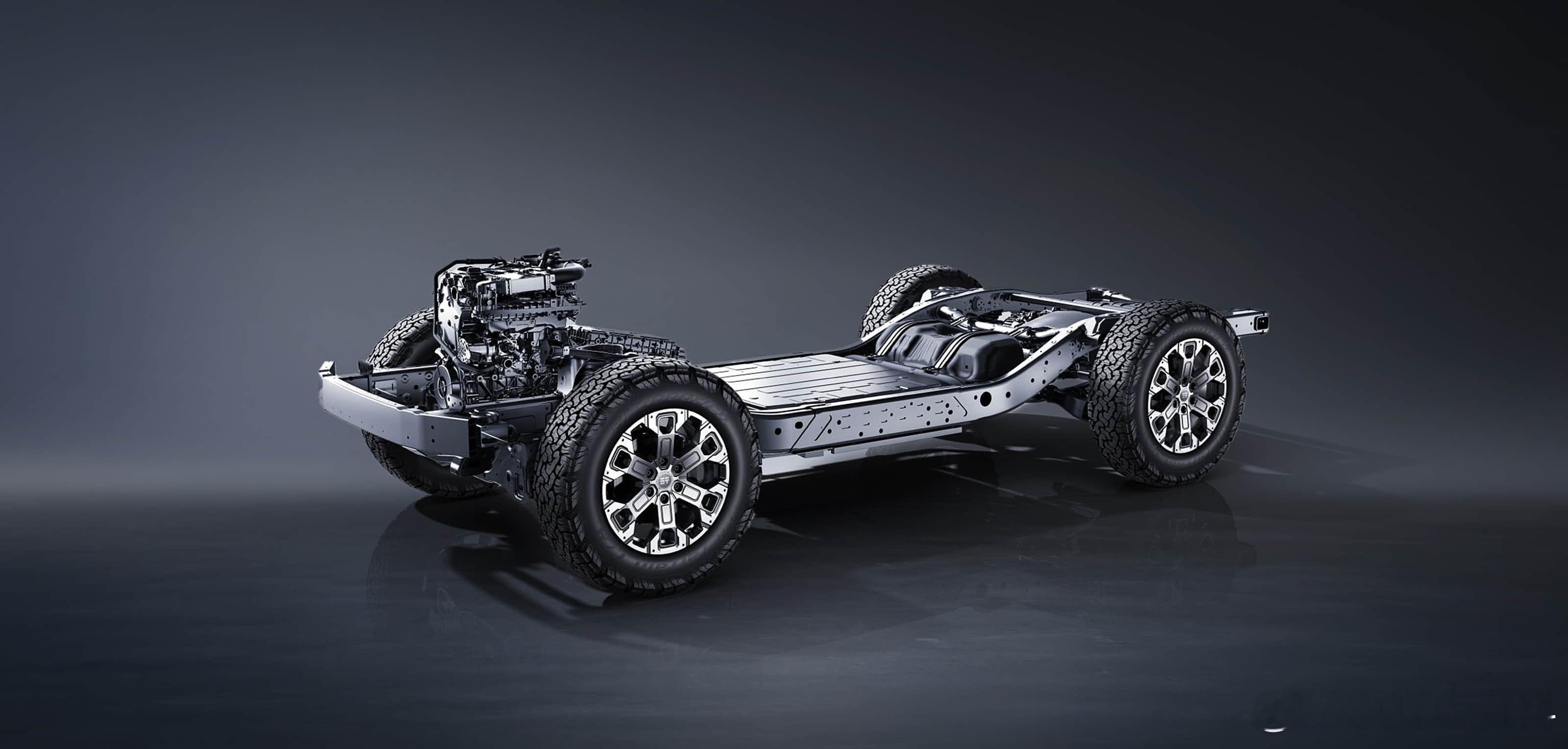 前桥匹配的2DHT十合一混动箱,P3电机输出210kW、360N·m,P4两挡电机输出300kW、435N·m,综合输出665kW,百公里加速4.6s,支持原地调头、攀爬防溜、柔性陡坡缓降等功能