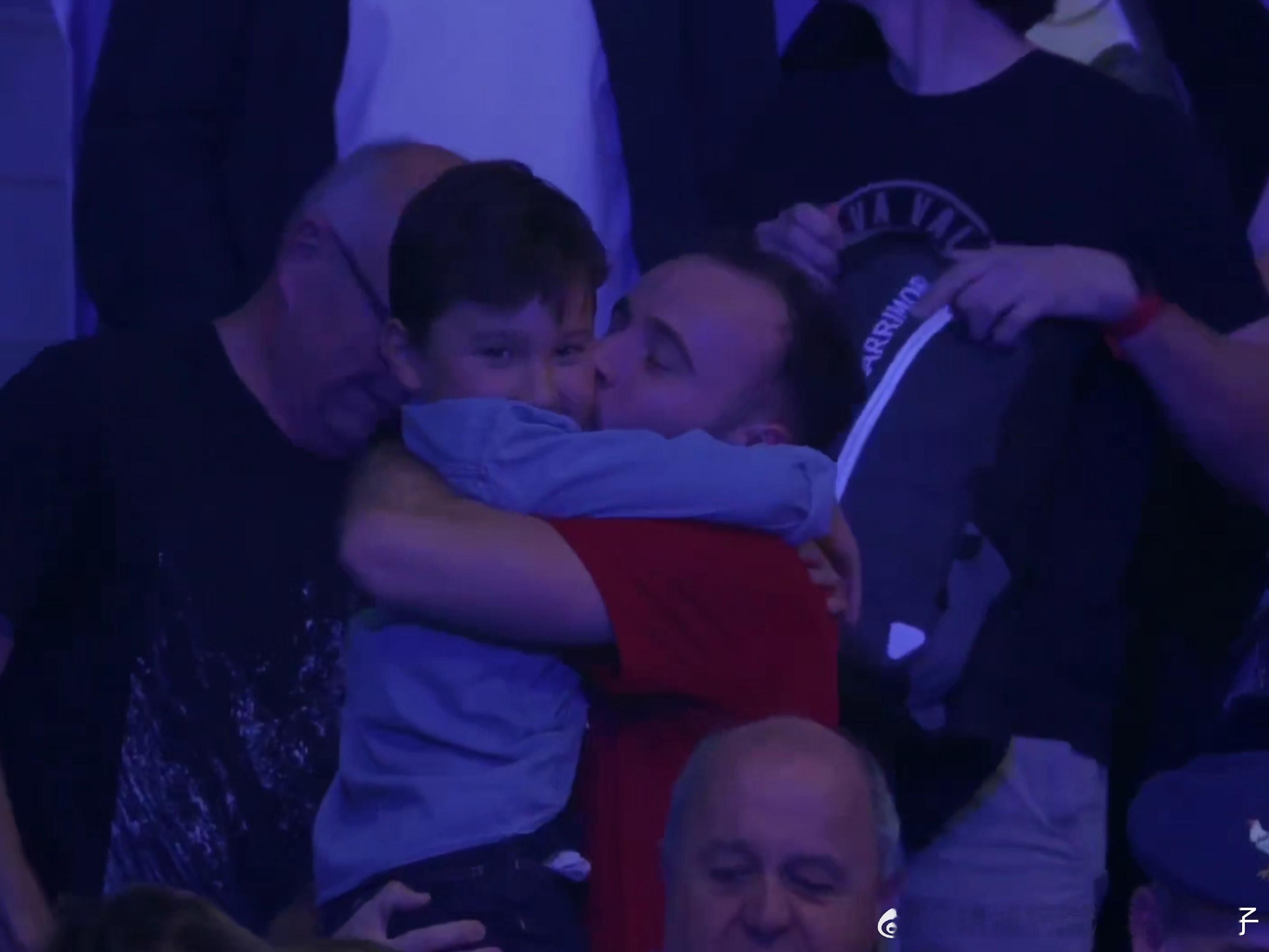 西蒙高茨赛后来台上拥抱亲吻儿子,一起分享这份喜悦
