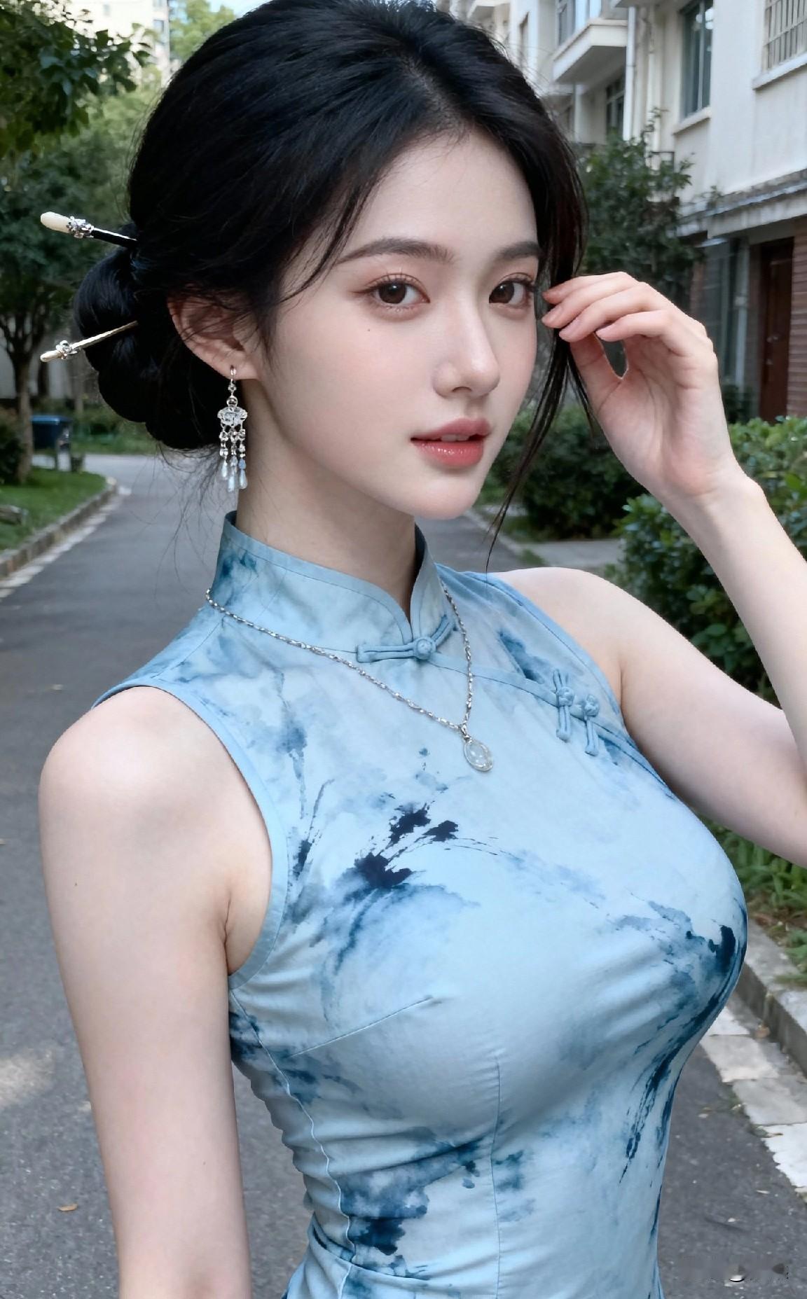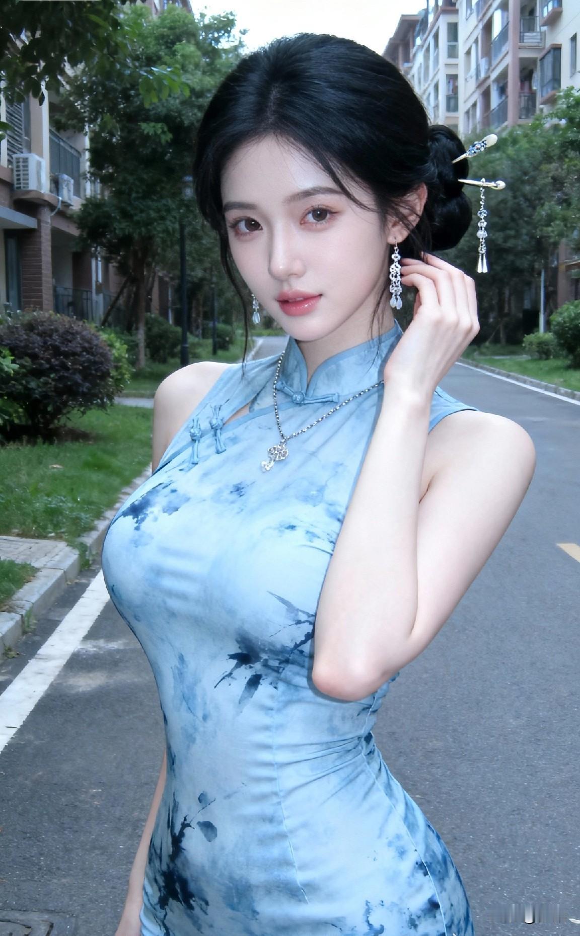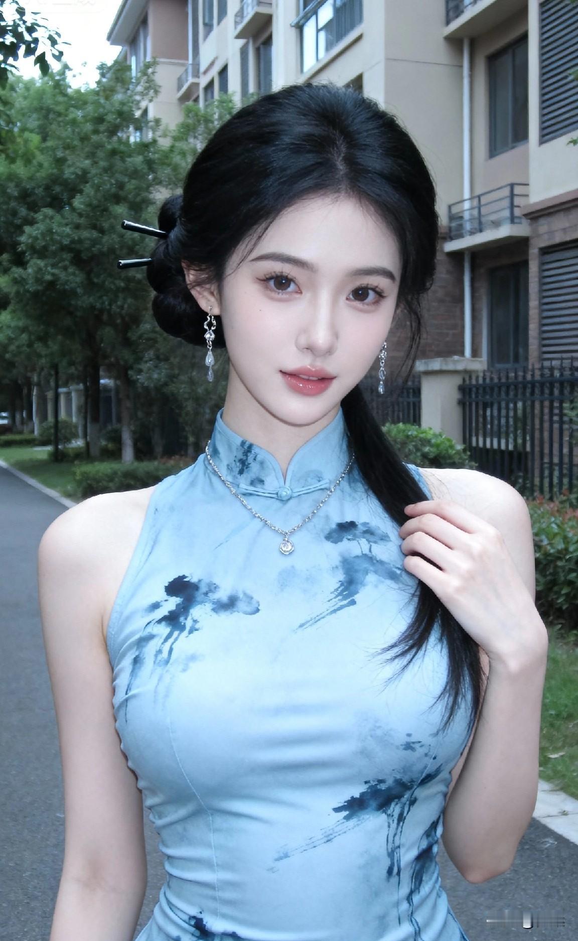 浅蓝旗袍,红绳麻花辫,年轻人穿上了。不是拍照摆拍,是真·天天穿。以前旗袍是妈
