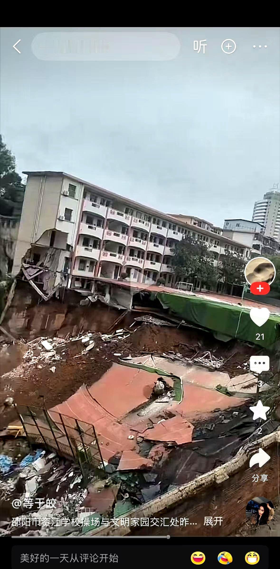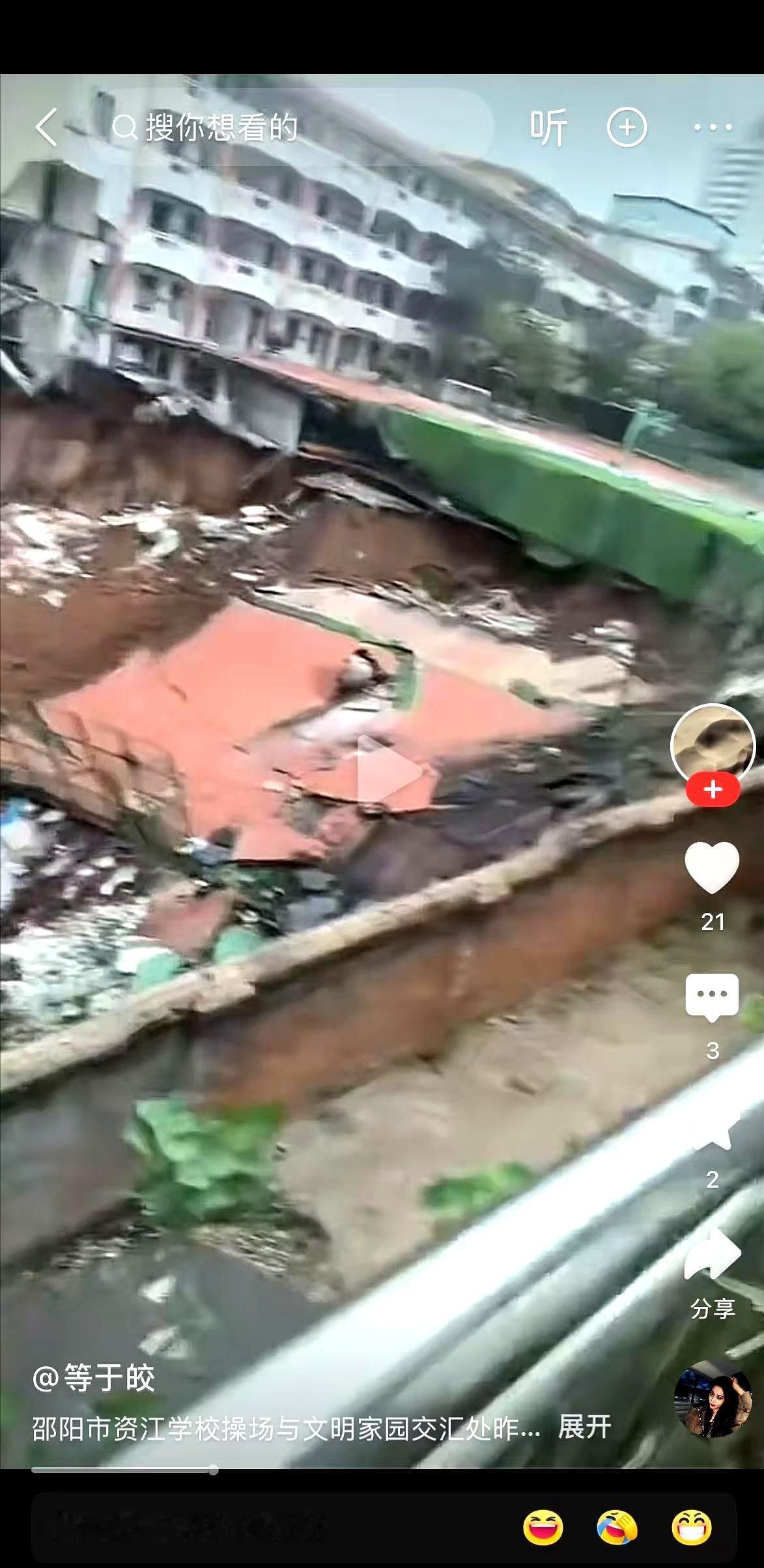邵阳资江小学操场坍塌,跟学校可没关系! 从现场图片可以看出来确实田径场下面是存