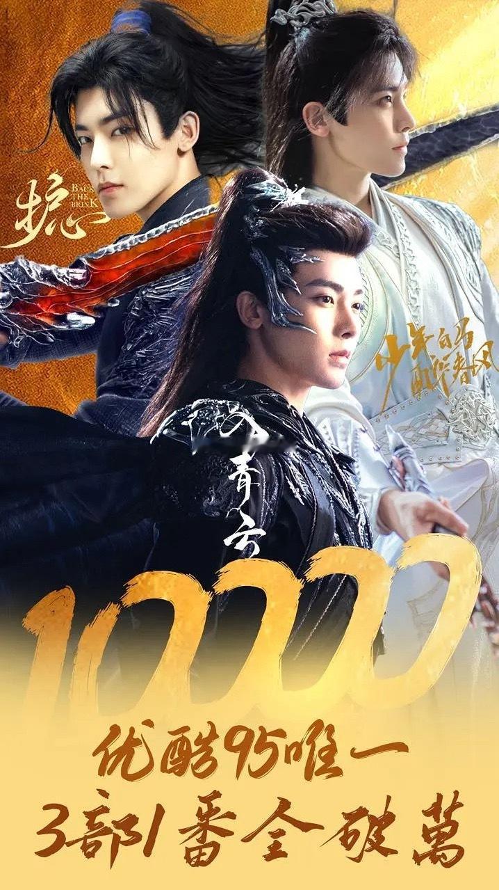 侯明昊优酷三部一番剧全破万了!参演五部剧全破万!伟大入青云破万