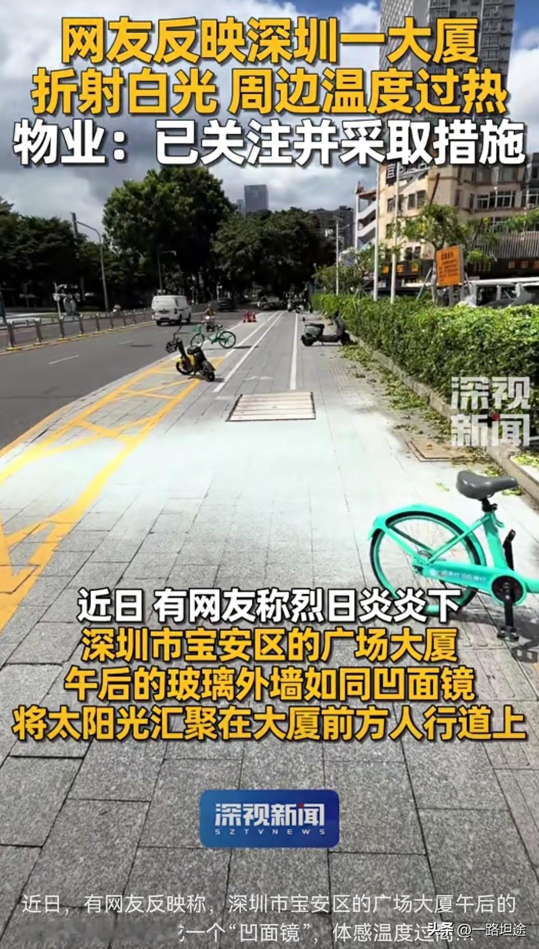 深圳现在新建的一些高层建筑(天健天骄、景祥大厦)的玻璃幕墙也存在同样的问题,每天傍晚玻璃幕墙反射的阳光非常刺眼,热量也不低,在家里必须得拉上窗帘遮光隔热。真是不明白这些楼房的设计师是怎么想的,到现在还在采用这种造成明显光污染又不环保的设计。