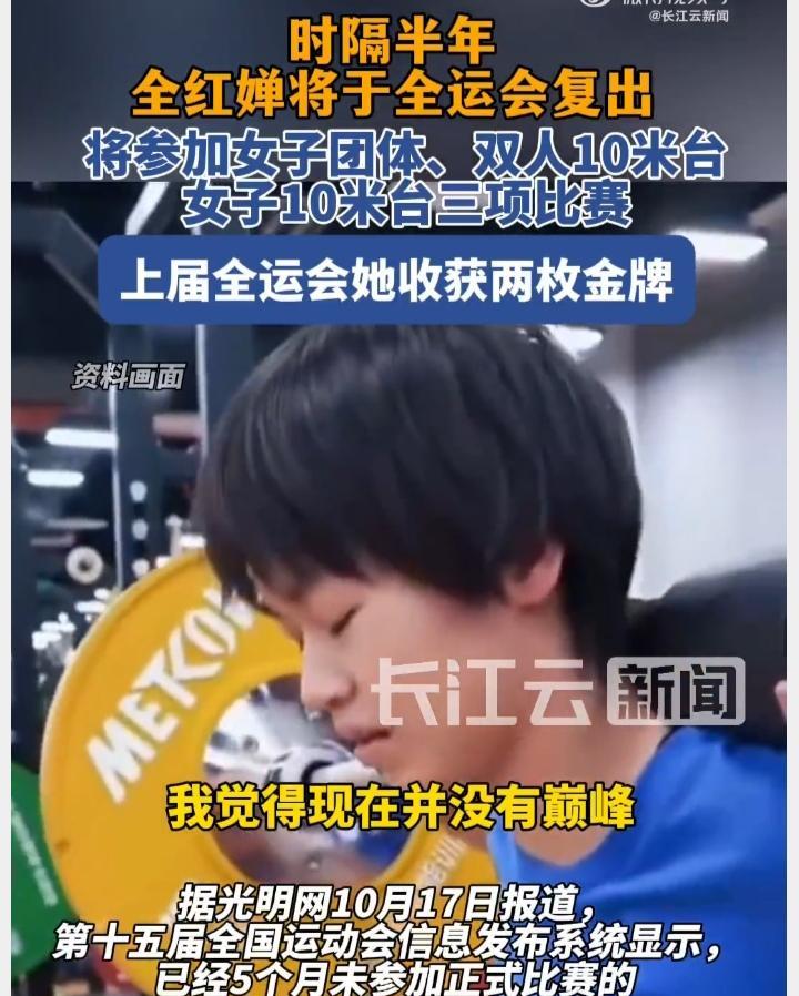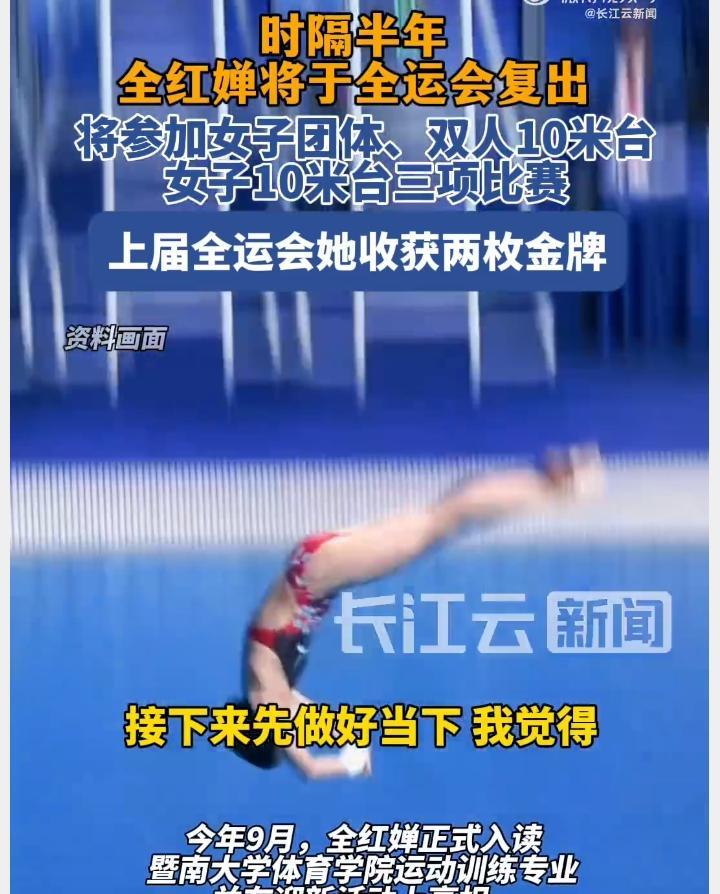 全红婵时隔近半年强势回归赛场!第十五届全国运动会跳水项目报名名单出炉,这位两届奥运金牌得主在列。她将代表广东队出战女子团体、女子双人10米跳台和女子单人10米跳台,与陈芋汐、张家齐等同项目高手同台争金。期待“水花消失术”再现,见证她在全运会的高光时刻!