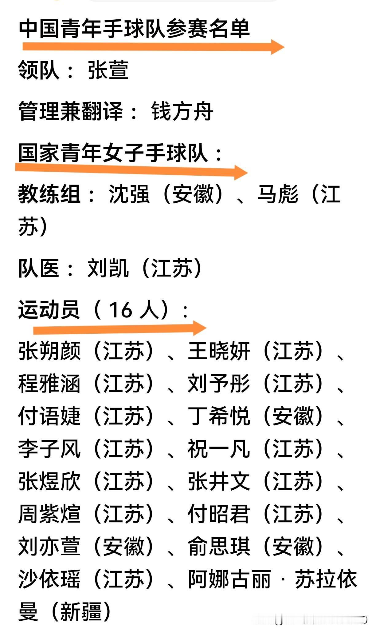 [中国青年男女手球队,江苏青年男女手球队运动员“打包“入选国家队] 第三届亚洲青年运动会将于10月22日至31日在巴林举行。中国青年男女手球队组成。 在男子16名参赛队员中,来自江苏的有7人,来自北京的有6人,安徽、广东、上海各1人。 在女子16名参赛队员中,来自江苏的有12人, 来自安徽的有3人,来自新疆的有1人。 江苏青年男女手球运动员,成了妥妥的“打包”入选中国青年男女手球队的大户。 预祝中国青年男女手球队在第三届亚洲青年运动会上取得好成绩![赞][赞][赞][点亮平安灯][点亮平安灯][点亮平安灯]